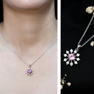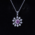 This Sapphire and Diamond Necklace is a graceful celebration of elegance, nature, and love. Designed for those who appreciate ethical beauty and timeless charm, this Flower Necklace blends sophistication with sustainability. Crafted in 14k white gold plated silver, the Snowflake Necklace features a dazzling AAAA quality lab created pink sapphire at the center set in prong setting. Surrounding it is a burst of brilliance from EF-VS quality lab grown diamonds, delicately arranged in a snowflake pattern. The design feels like a perfect mix of winter wonder and floral freshness, making it ideal for both cold seasons and sunny days. The Pink Sapphire Pendant hangs from a polished nail and comes with a matching chain for easy styling. Whether you are dressing up for a special dinner or adding a meaningful sparkle to your everyday look, this necklace is the perfect companion. Ethically made with lab created stones, this Floral Pendant is a beautiful choice for anyone who values sustainable and responsible luxury. Plus, it comes with a certificate of authenticity and is packed in a premium jewelry box, making it an ideal gift for birthdays, anniversaries, or a just-because moment.
