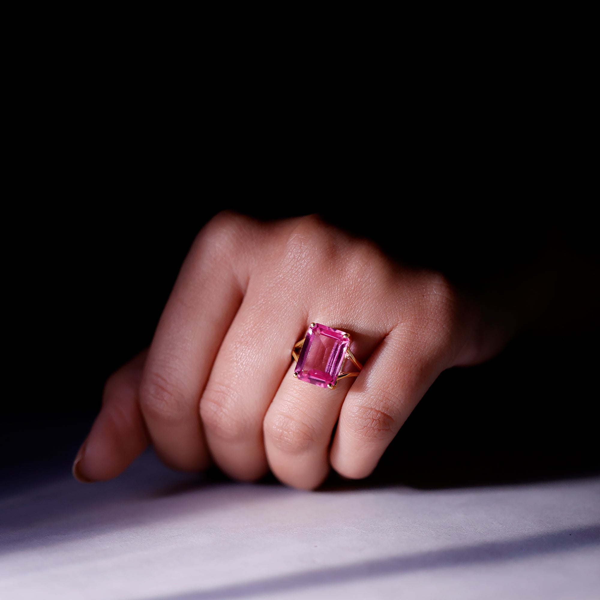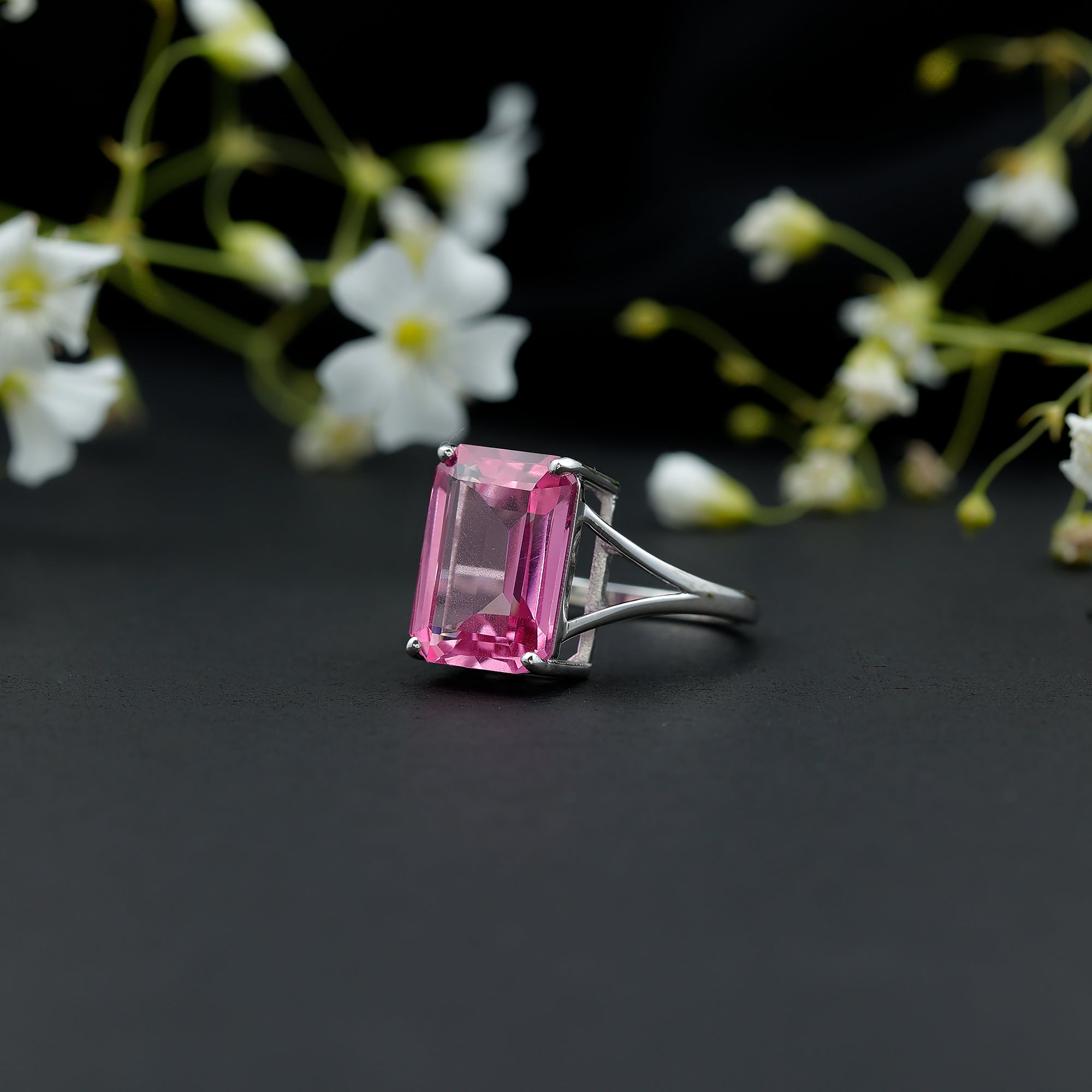 All eyes will be drawn to her with this bold Huge Engagement Ring, designed to make a powerful and unforgettable statement. At the center sits a stunning 10X14 MM emerald cut lab created pink sapphire, held securely in basket setting. Its bright and vivid color stands out beautifully, giving the Emerald Cut Engagement Ring a glamorous and luxurious feel. The split-shank design adds a modern touch, creating an elegant frame that highlights the large center stone. This thoughtful design gives the Pink Sapphire Ring balance while enhancing its overall brilliance. Whether worn as an engagement ring, cocktail ring, or special occasion piece, it instantly elevates any outfit with its striking presence. Perfect for anyone who loves huge, eye-catching jewelry, this Statement Ring offers the ideal blend of beauty and boldness. The vibrant gemstone draws attention from every angle, making it a wonderful choice for those who enjoy wearing unique and memorable pieces. Comfortable for everyday wear yet dramatic enough for evening events, this Sapphire Cocktail Ring brings confidence, charm, and sophistication.