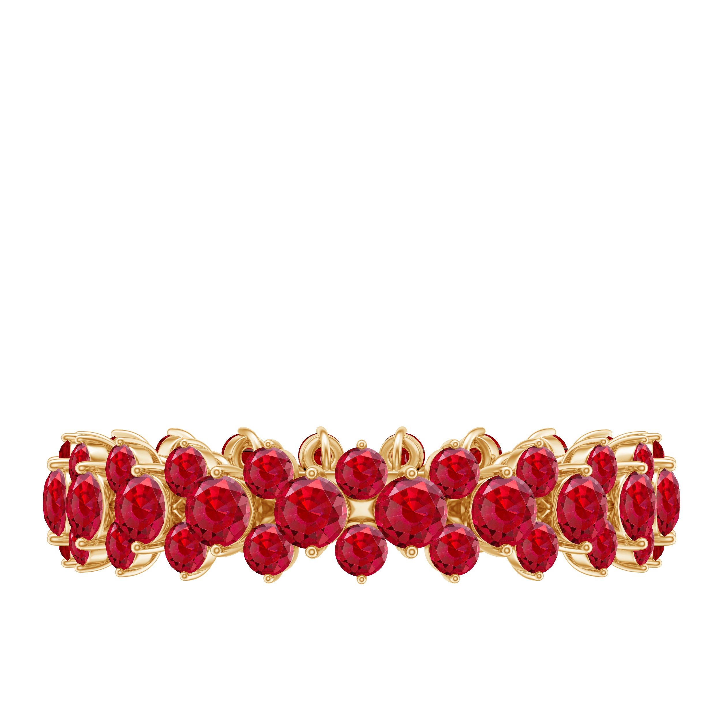 Show your endless love and commitment with this stunning Ruby Eternity Band. The Cluster Wedding Band is designed with a continuous charm of round cut lab grown rubies, carefully set in prong setting all around the band. Each ruby in this band is created in a lab with AAAA quality, offering beautiful color and clarity without compromise. The prong setting holds each stone securely while allowing plenty of light to pass through, making the rubies sparkle brilliantly. Because the stones go all the way around, this full eternity band symbolizes forever with no beginning and no end, perfect for marking special milestones, anniversaries, or lifelong promises. The even design of this Ruby Wedding Band makes it comfortable to wear every day, whether on its own or stacked with other rings. This Stackable Ruby Ring is a wonderful way to add a pop of color and meaning to any jewelry collection. Lab created rubies offer an ethical and affordable alternative without sacrificing beauty, making this eternity band a smart and thoughtful choice. Whether you are celebrating a special moment or simply want to treat yourself, this Ruby Anniversary Band combines classic elegance with a modern feel.