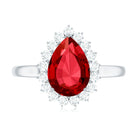 Shine and steal the show with this dazzling Teardrop Ring. Featuring a pear-cut created ruby and round Diamond in a Halo, this halo ring exudes glamour.