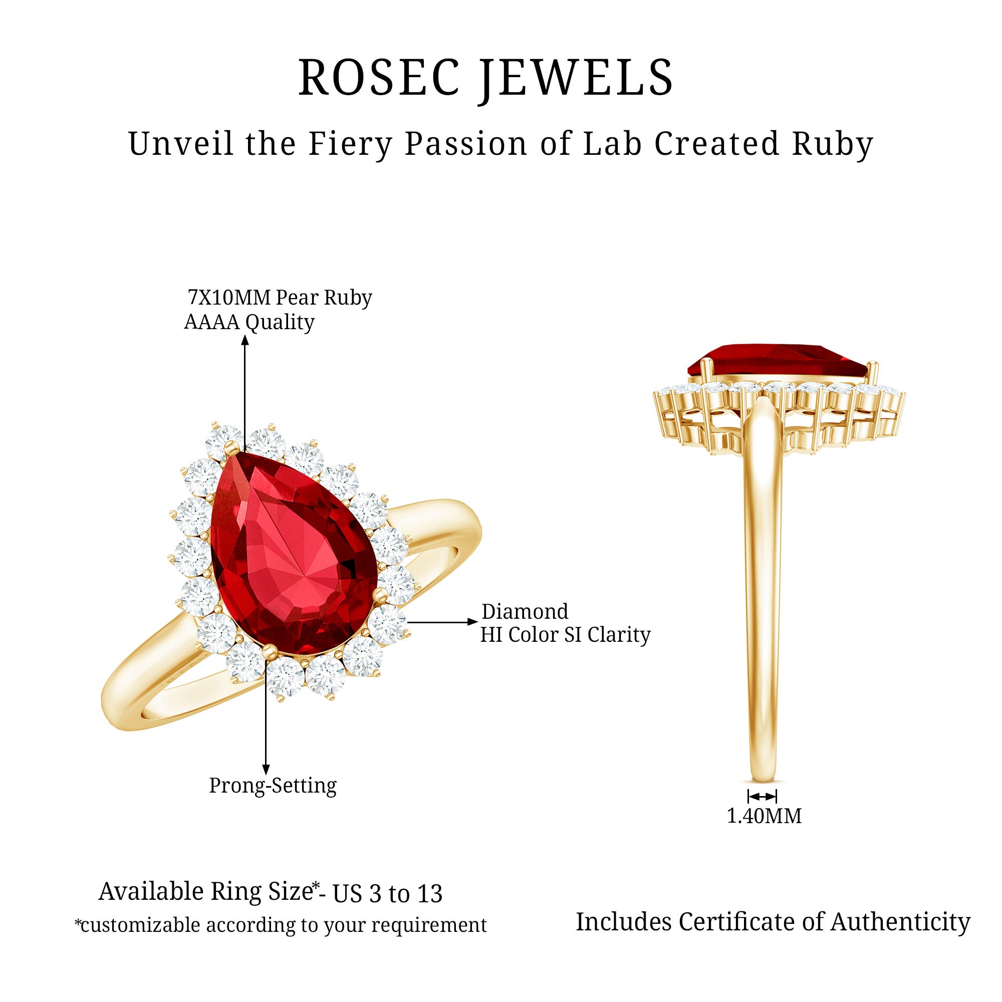 Lab Created Ruby Teardrop Engagement Ring with Diamond Halo