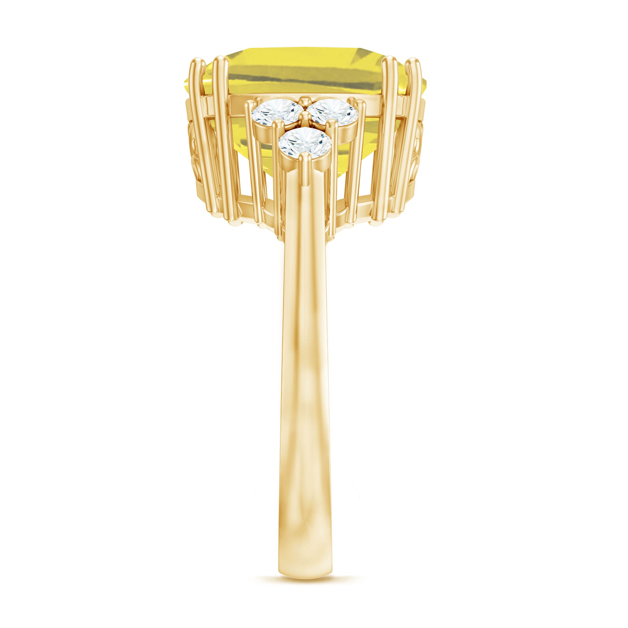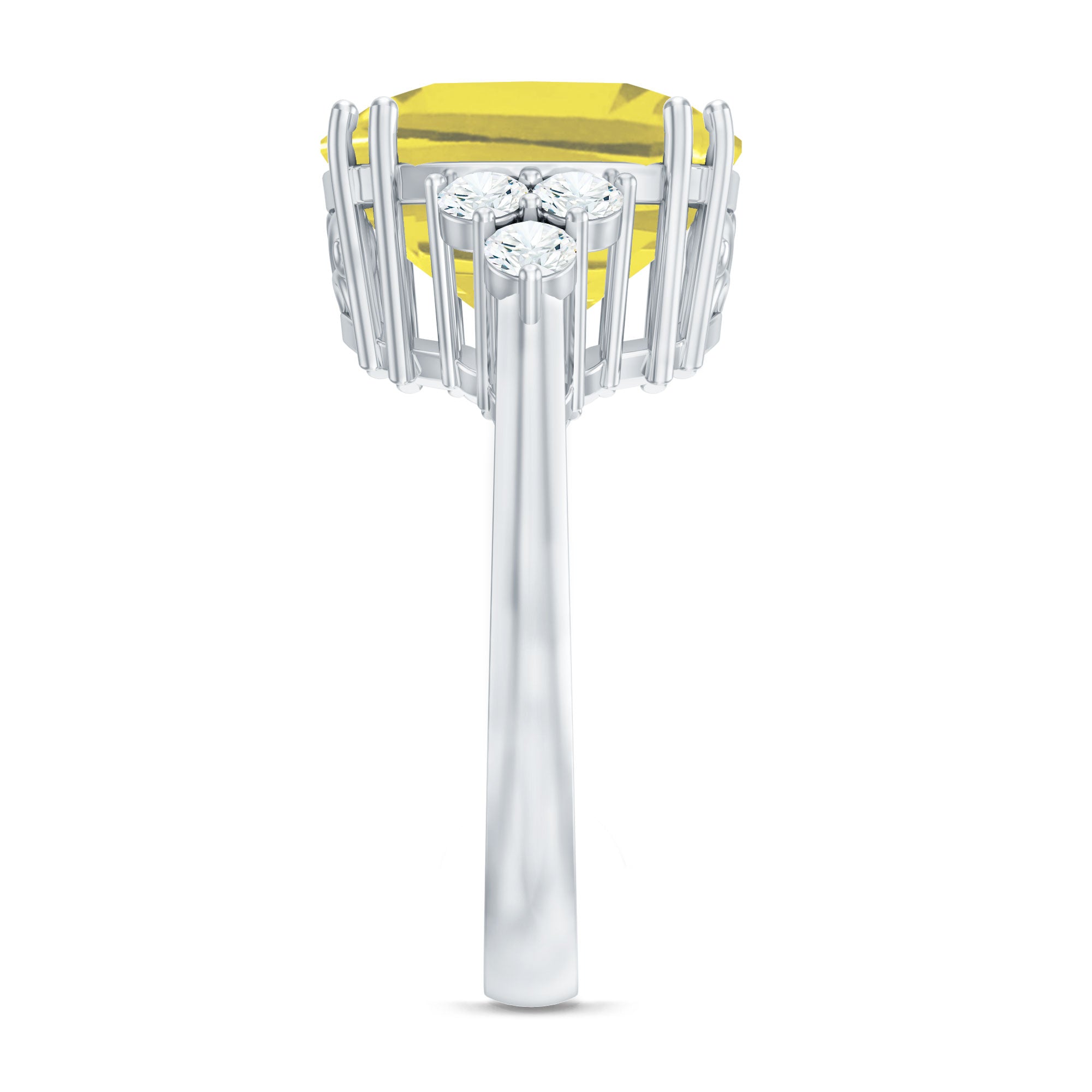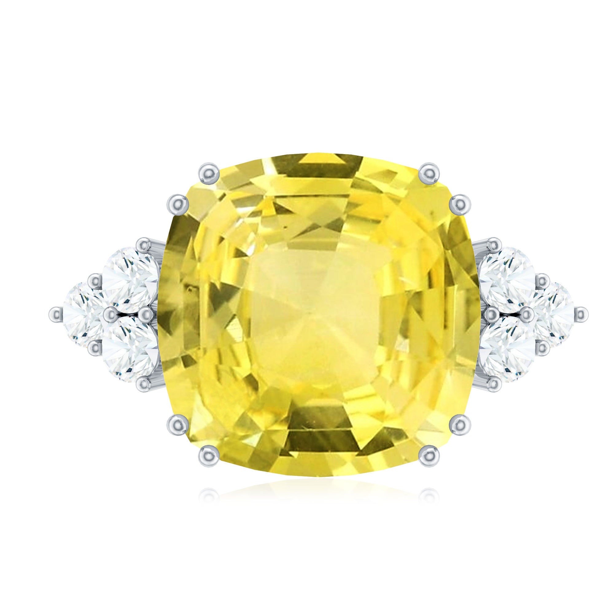 Simple yet elegant, the Solitaire Engagement Ring is embellished with Cushion Cut Lab Created Yellow Sapphire secured by Prong Setting while Round Diamond Trio is studded on either side of the center stone. On your special day, this Created Sapphire Ring will captivate everyones attention towards her. Get this striking Solitaire Ring for her as a birthday gift.