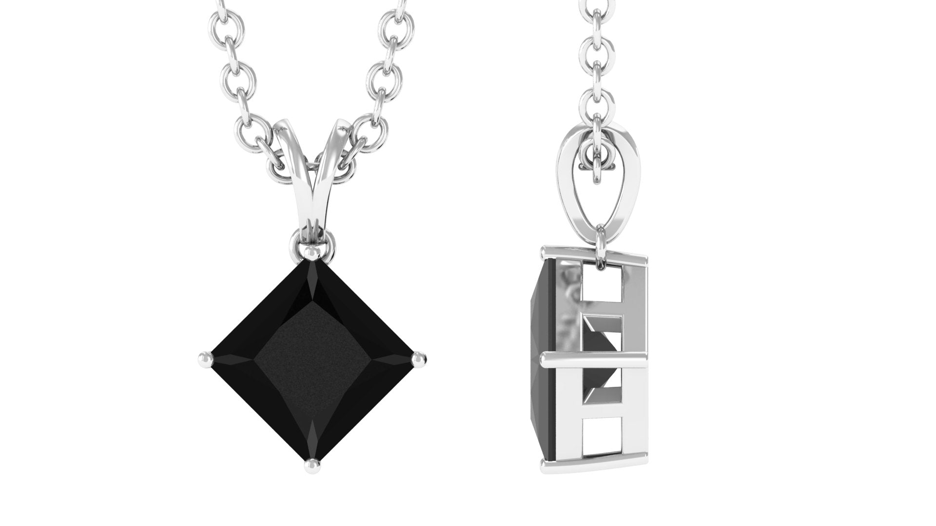 Illuminate your style with this Lab Grown Black Diamond Pendant, a versatile piece that instantly complements both casual and formal looks. It features 6 MM Princess Cut Lab Grown Black Diamond Securely placed in 4 Prong Setting. The black allure of this Square Pendant Necklace makes this piece a perfect choice to wear at evening parties or lunch dates. Make your special one feel more special by gifting Solitaire Pendant and let it be the reason for her precious smile.