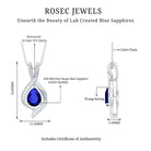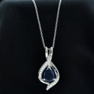Lab Grown 6X8 MM Blue Sapphire Teardrop Pendant with Moissanite