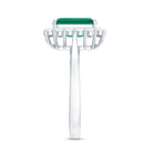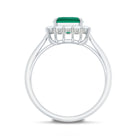 Lab Grown 7X9 mm Emerald Cut Emerald Vintage Engagement Ring with Diamond Halo