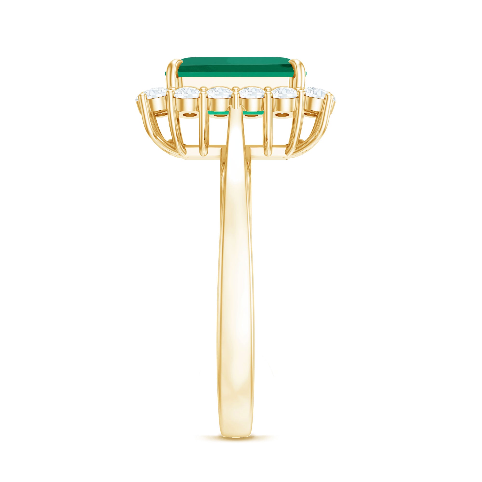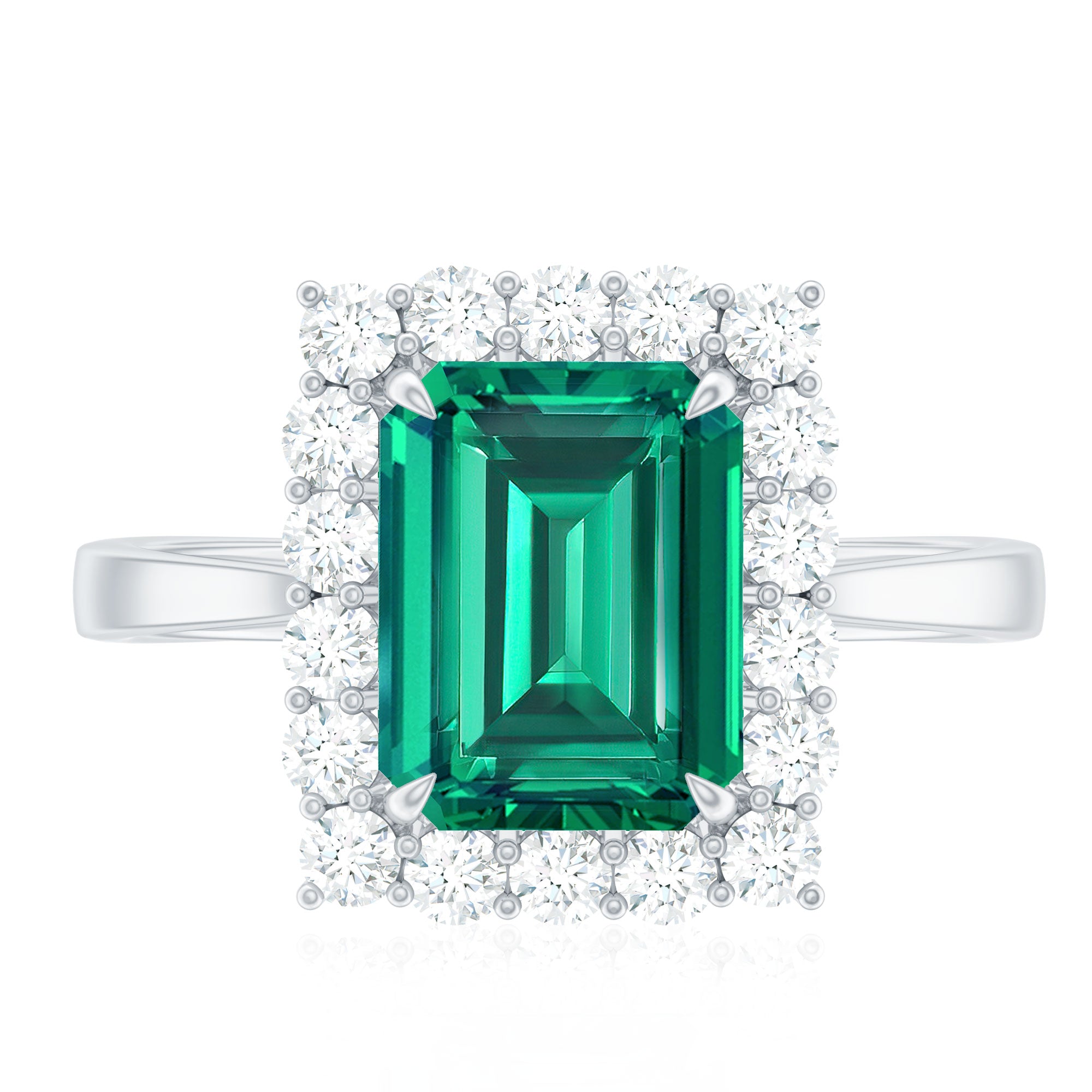 Make a lasting impression with this stunning Vintage Inspired Engagement Ring. The striking 7X9 mm Emerald Cut Lab Created Emerald sits at the center in Claw Setting, showcasing a deep green hue that radiates sophistication and timeless charm. Surrounding the center stone is a sparkling Diamond Halo, carefully crafted to enhance the brilliance of the Lab Emerald while adding a touch of vintage elegance. Every detail is thoughtfully designed to create a sense of nostalgia and refined beauty. The Lab Grown Emerald is known for its lush green hue, while the Diamond Halo represents eternal love and unbreakable commitment. Perfect for those who appreciate unique and meaningful designs, this Emerald Cut Engagement Ring blends vintage charm with sustainable luxury. Whether chosen for a proposal or as a special gift, this Emerald Diamond Engagement Ring is sure to be a treasured piece for generations. Available in various ring sizes and presented in a Signature Jewelry Box, this Lab Grown Emerald Ring is a timeless expression of your love.