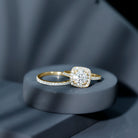 Shine brightly when you don this Lab Grown Diamond Wedding Ring Set, a classic piece that is sure to turn heads. This set includes two rings - an Engagement Ring paired with a Wedding Band. The centerpiece is an 8 MM round-shaped lab-grown diamond of EF-VS quality, securely held in prong setting and surrounded by a halo of diamonds that also serve as side stones. The matching Enhancer Band is adorned with additional diamond stones, also known as a half eternity ring, and it beautifully complements the halo ring. Whether you choose to wear them together for a striking look or separately for more versatile options, this Bridal Ring Set is a genuine symbol of love and commitment, ideal for the bride-to-be who deserves something truly special. With its simplicity and timeless elegance, this Halo Engagement Ring Set showcases delicate details that highlight the natural beauty representing the essence of your love story, creating a lasting and meaningful tribute to your journey together.