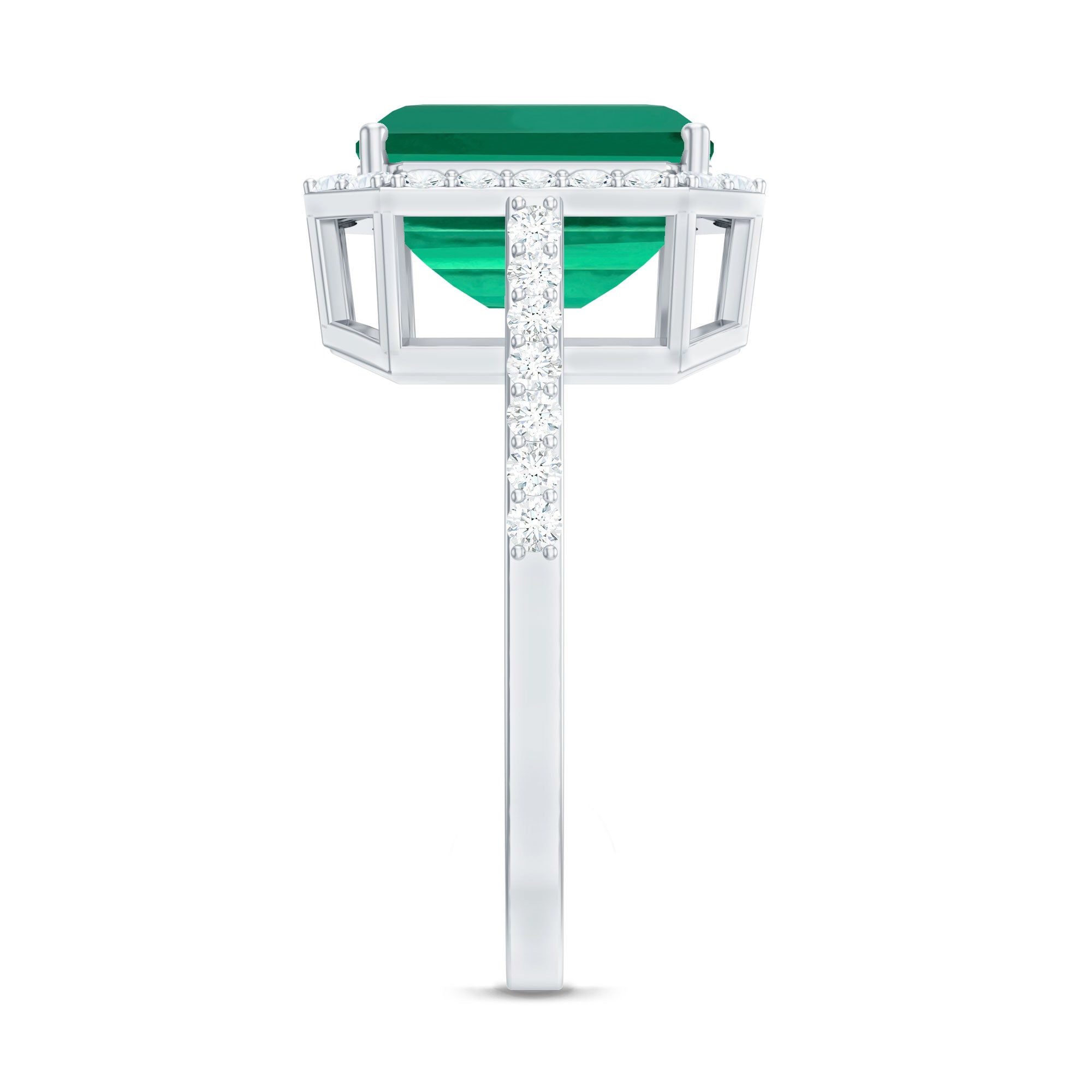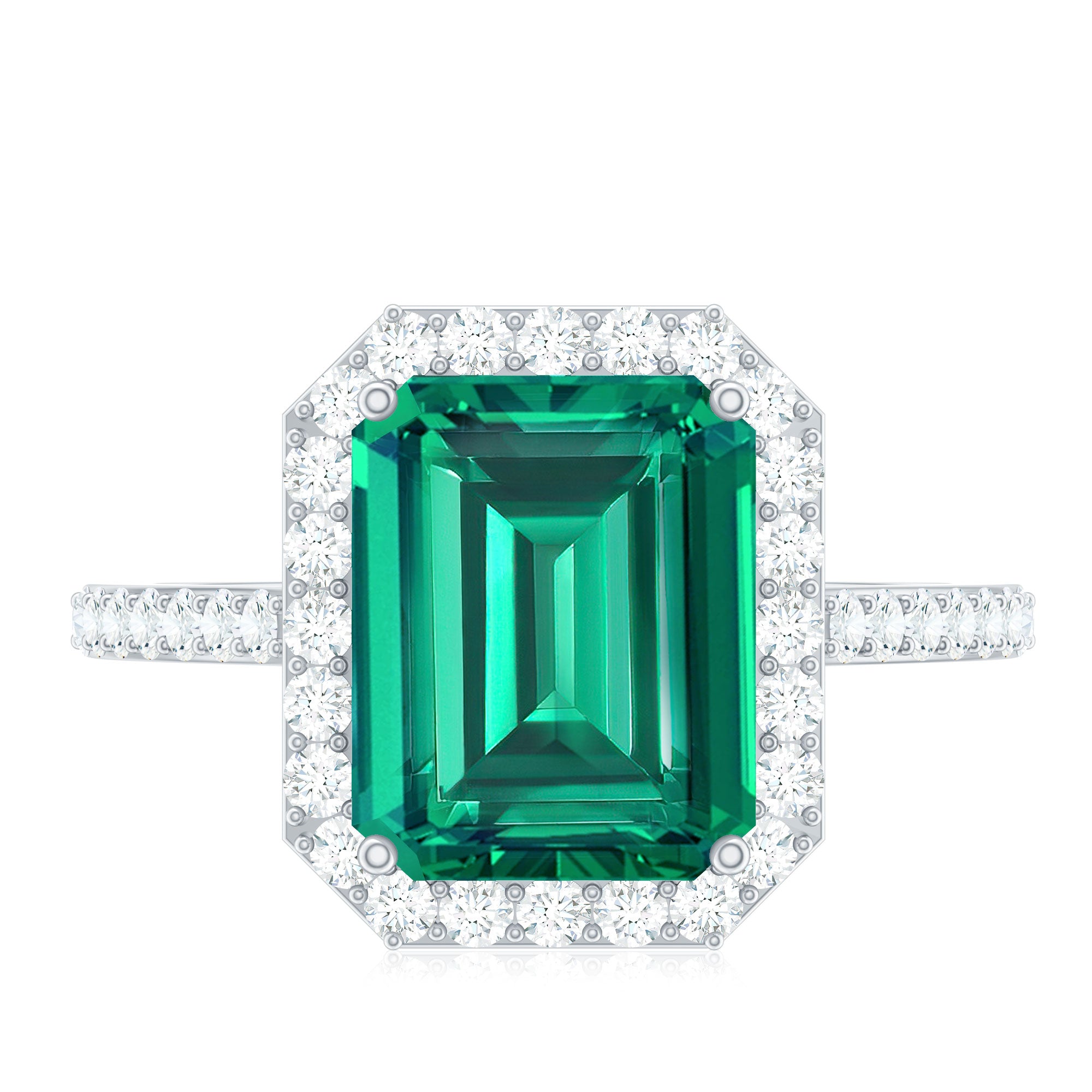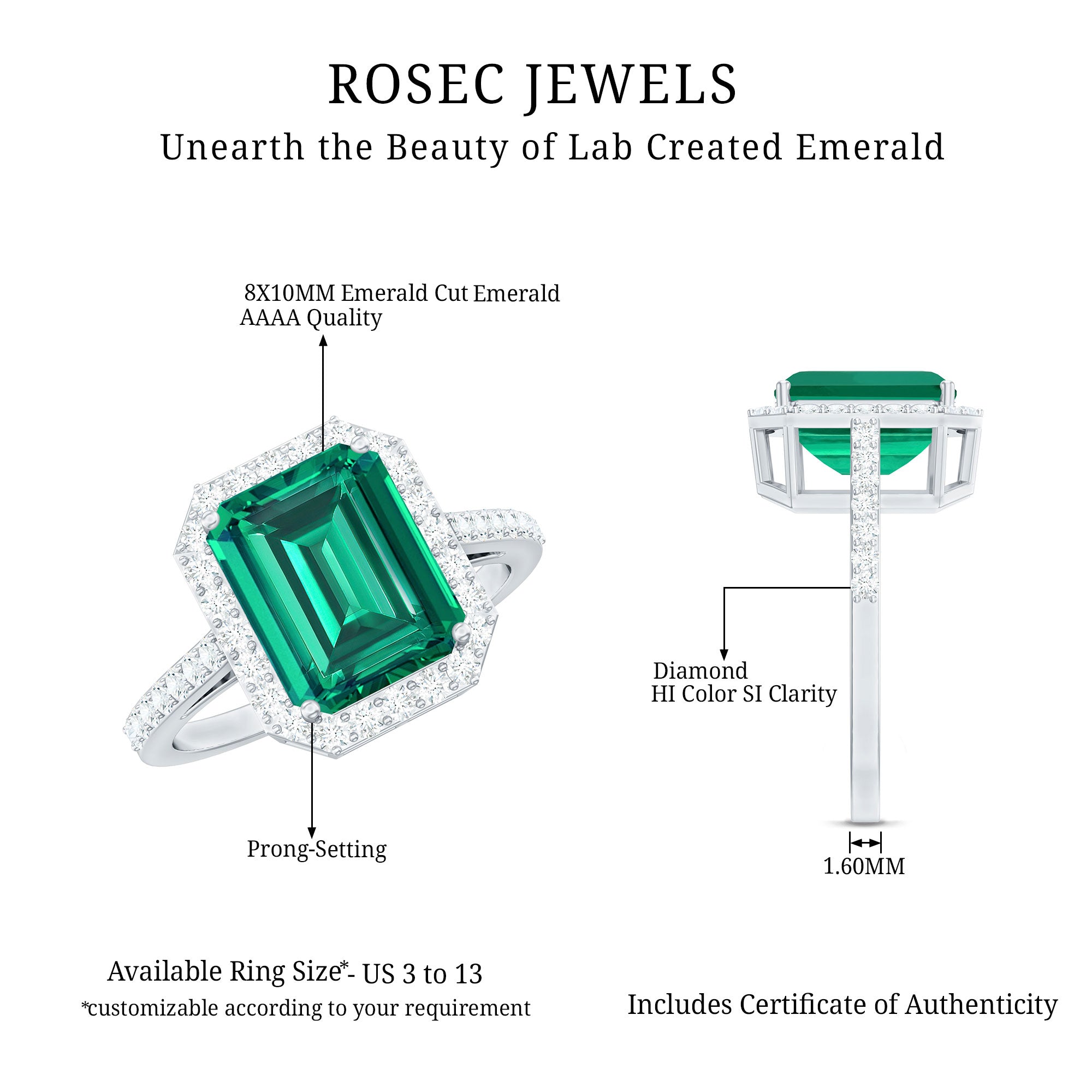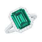 Lab Grown 8X10 mm Emerald Cut Emerald Engagement Ring with Diamond Halo