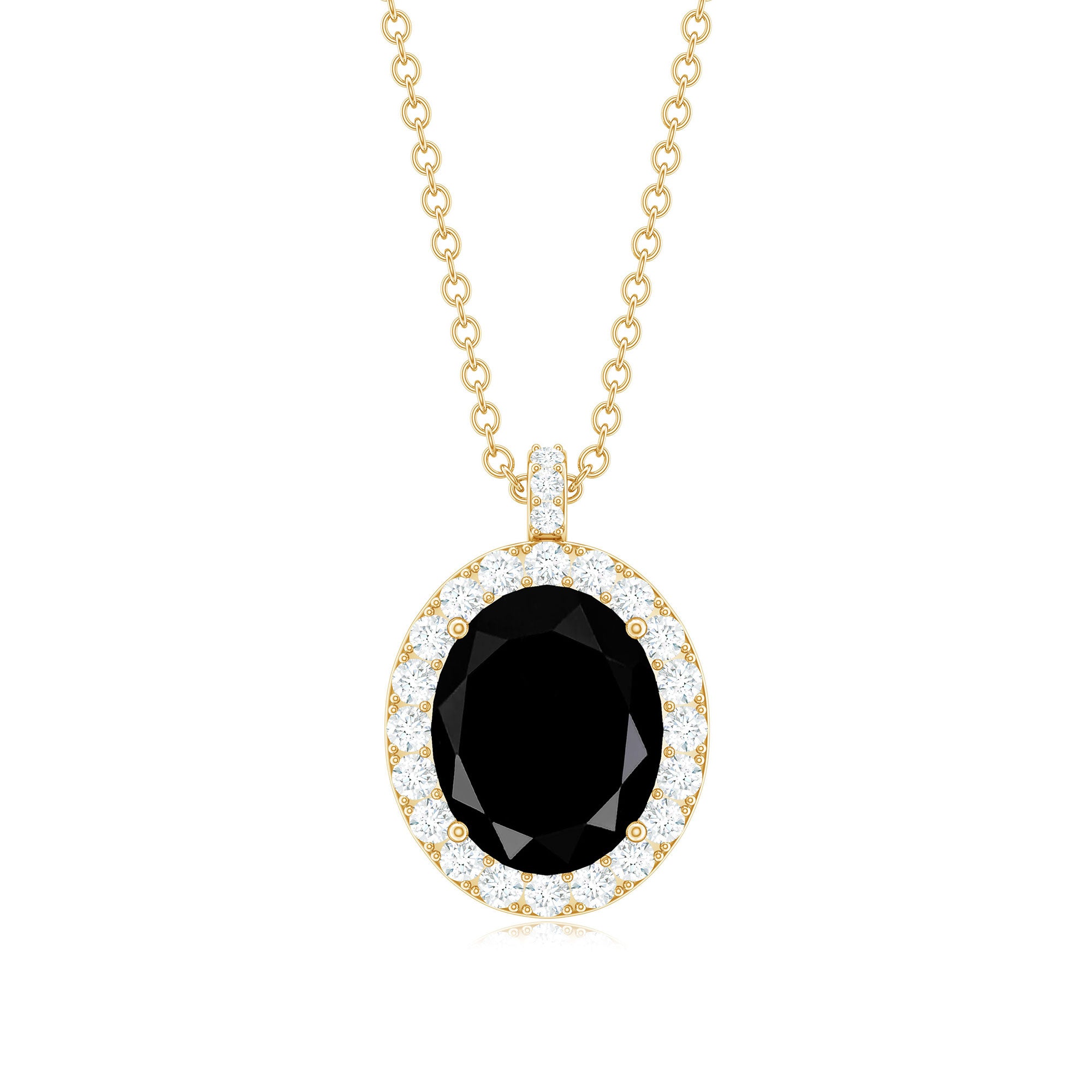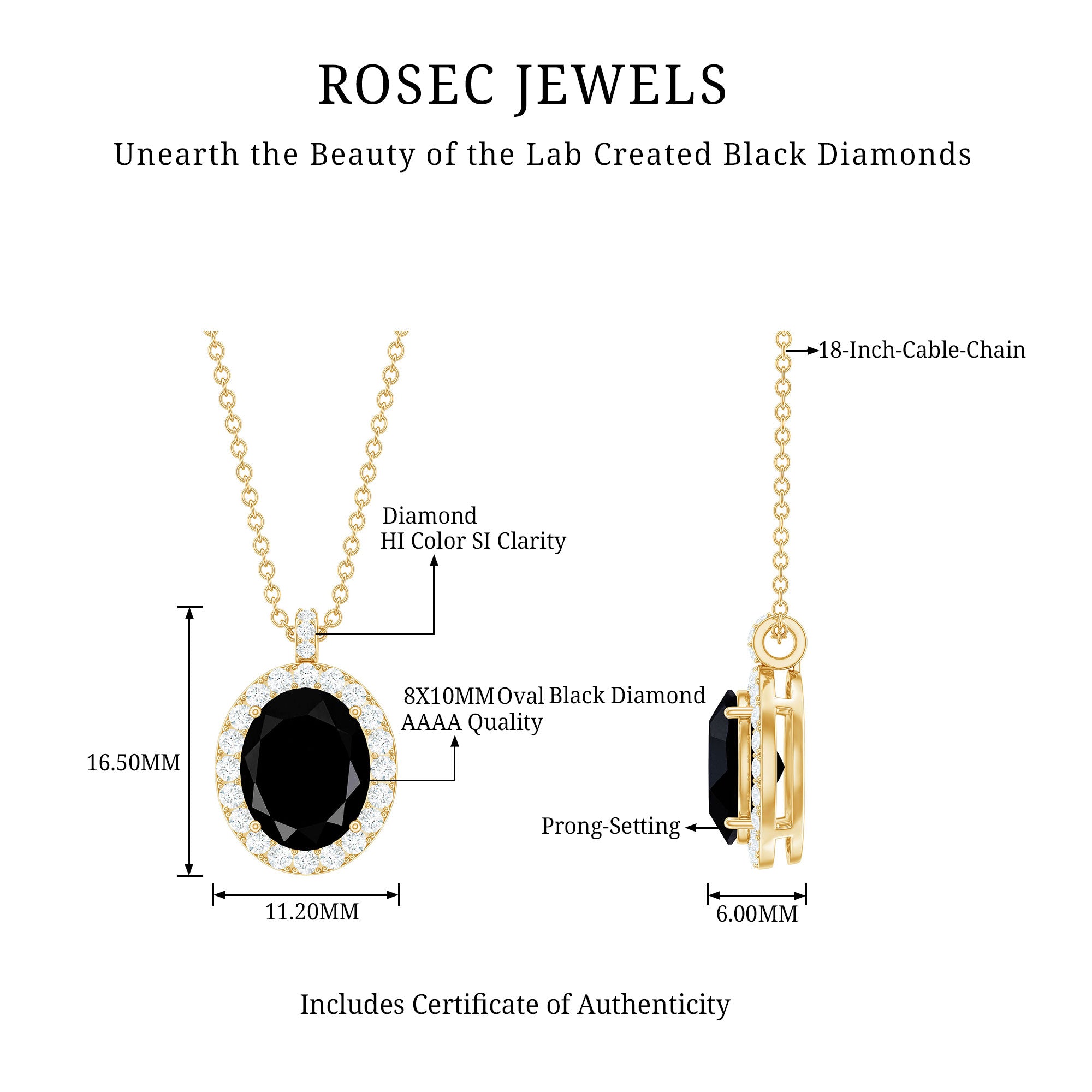 This Halo Pendant Necklace is adorned with Oval Cut Lab Grown Black Diamond while Round Shape Diamonds add a touch of elegance. The Lab Grown Black Diamond Pendant is crafted with Solid Metal, will add a fun flair to your overall look and will enchant your eyes with its sensational illumination.