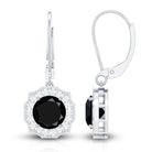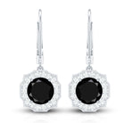 Lab Grown Black Diamond Drop Earrings with Diamond Halo