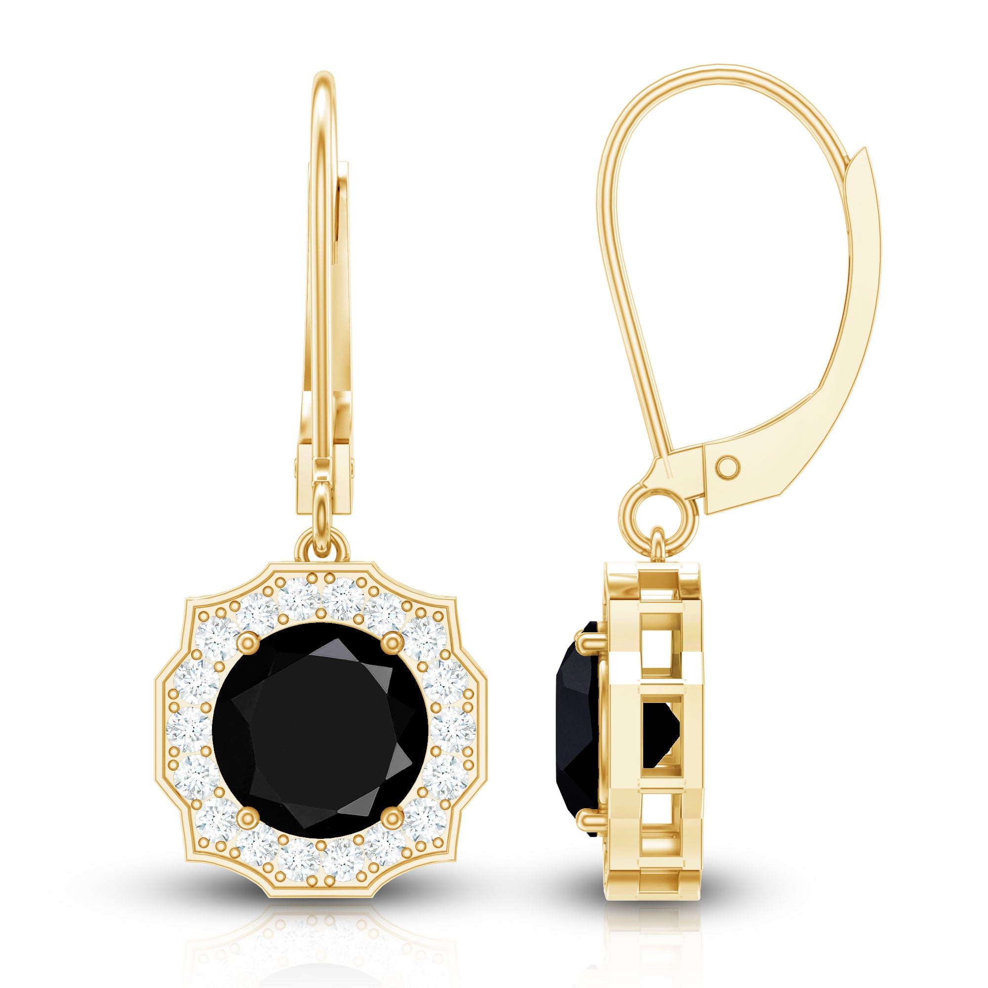 Highlight your elegance with these lab created Black and White Diamond Earrings. Crafted with perfection and attention to detail, these Halo Earrings showcase the mesmerizing allure of 8 mm Round Shape Black Diamond of Aaaa quality, surrounded by a shimmering halo of White Diamond gemstones of Ef-Vs quality, capturing the essence of timeless beauty. The Lever Back Closure ensures a secure and comfortable fit, allowing you to shine with confidence. The gemstones in these Diamond Drop Earrings carry a total weight of 5 carats, whether as a gift for bride to be or a Valentines Day gift for your lady love these Black Diamond Earrings will sure to capture their heart. Elevate your style with these stunning April Birthstone Earrings from Rosec Jewels, where craftsmanship meets luxury.