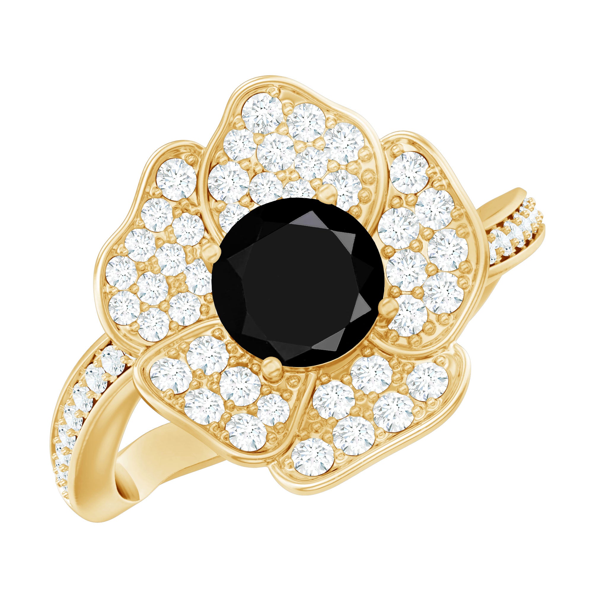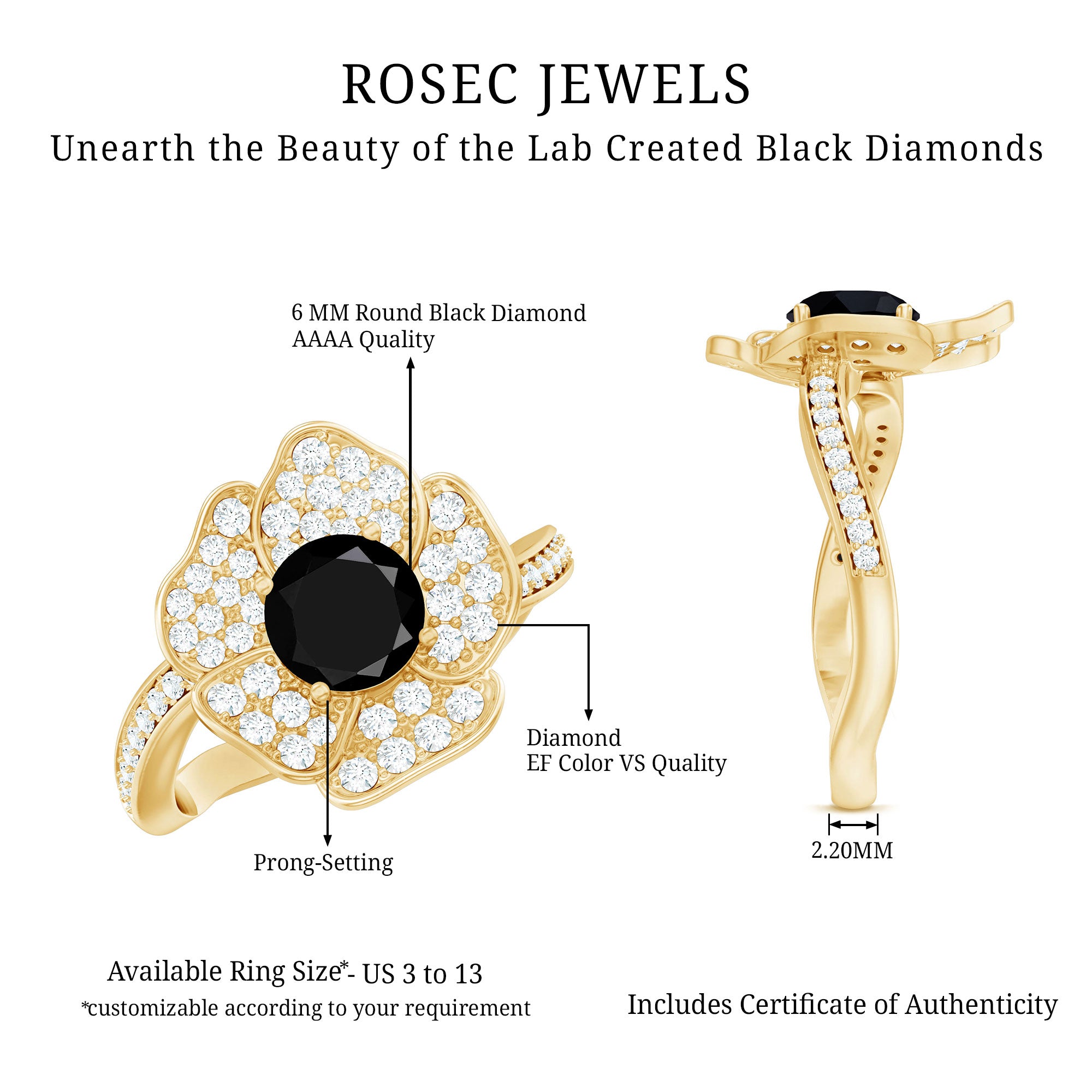 Lab Grown Black Diamond Flower Engagement Ring with Diamond Accent