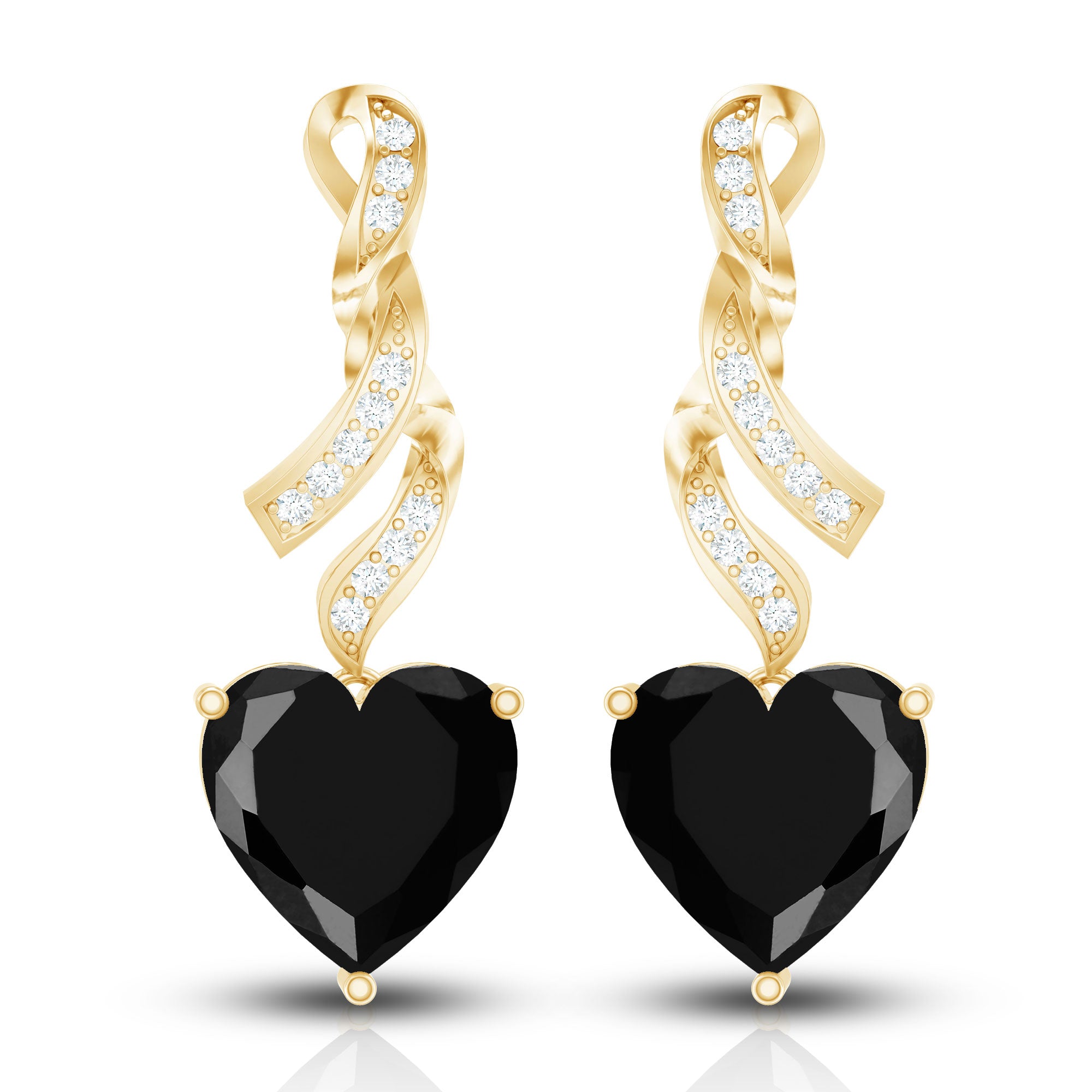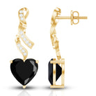 Lab Grown Black Diamond Heart Drop Earrings with Diamonds