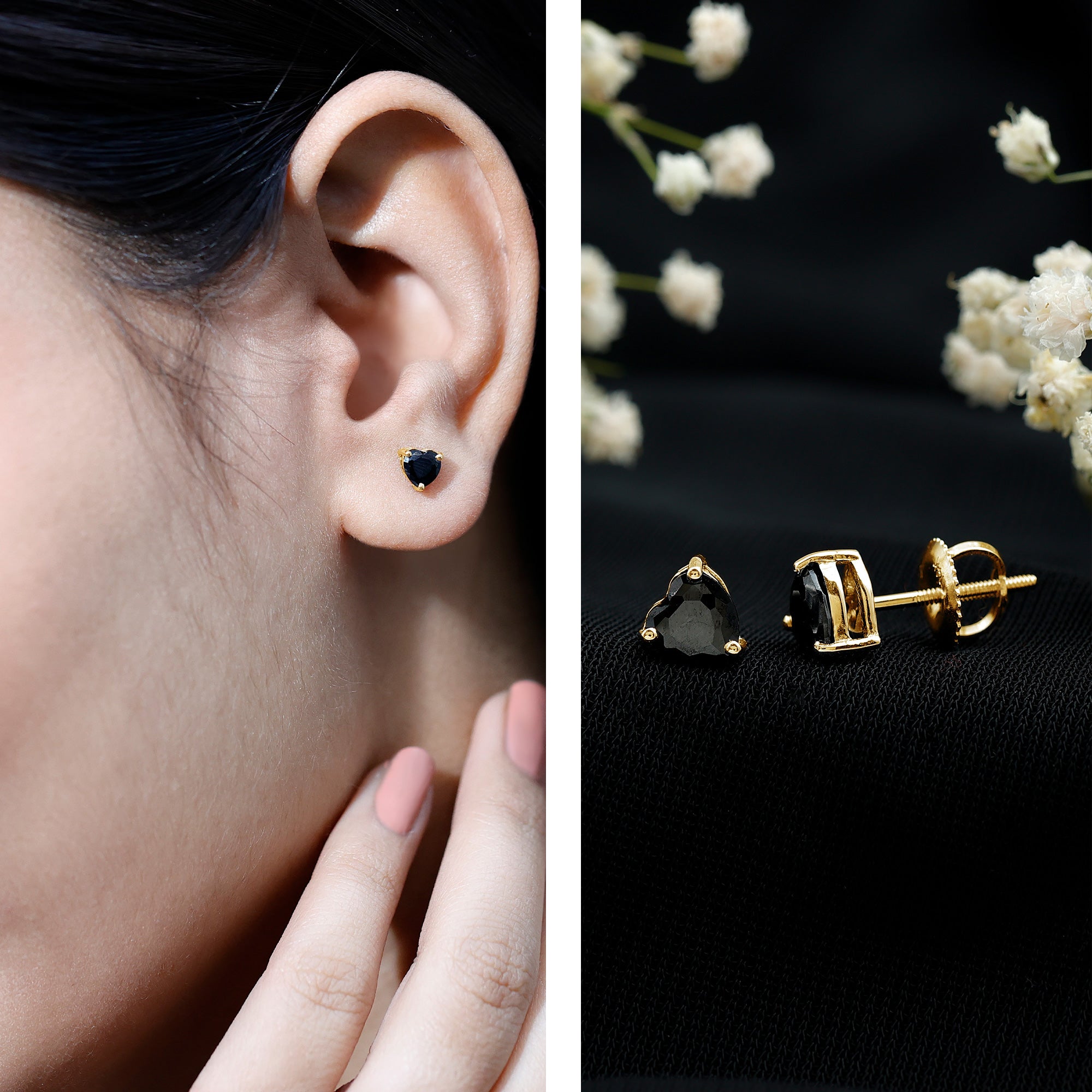 Explore the beauty of these Heart Earrings exquisitely designed to impress everyone around you. Feature 5 mm Heart Shaped Lab Grown Black Diamond gracefully set in prong setting. The luxurious allure of Aaaa quality Black Diamond adds an extra hint of sparkle and elegance to the design. These Black Diamond Stud Earrings come with Screw-back closures which makes them convenient for everyday wear. These Solitaire Earrings are handcrafted by Rosec Jewels, where each piece offers a touch of sophistication.