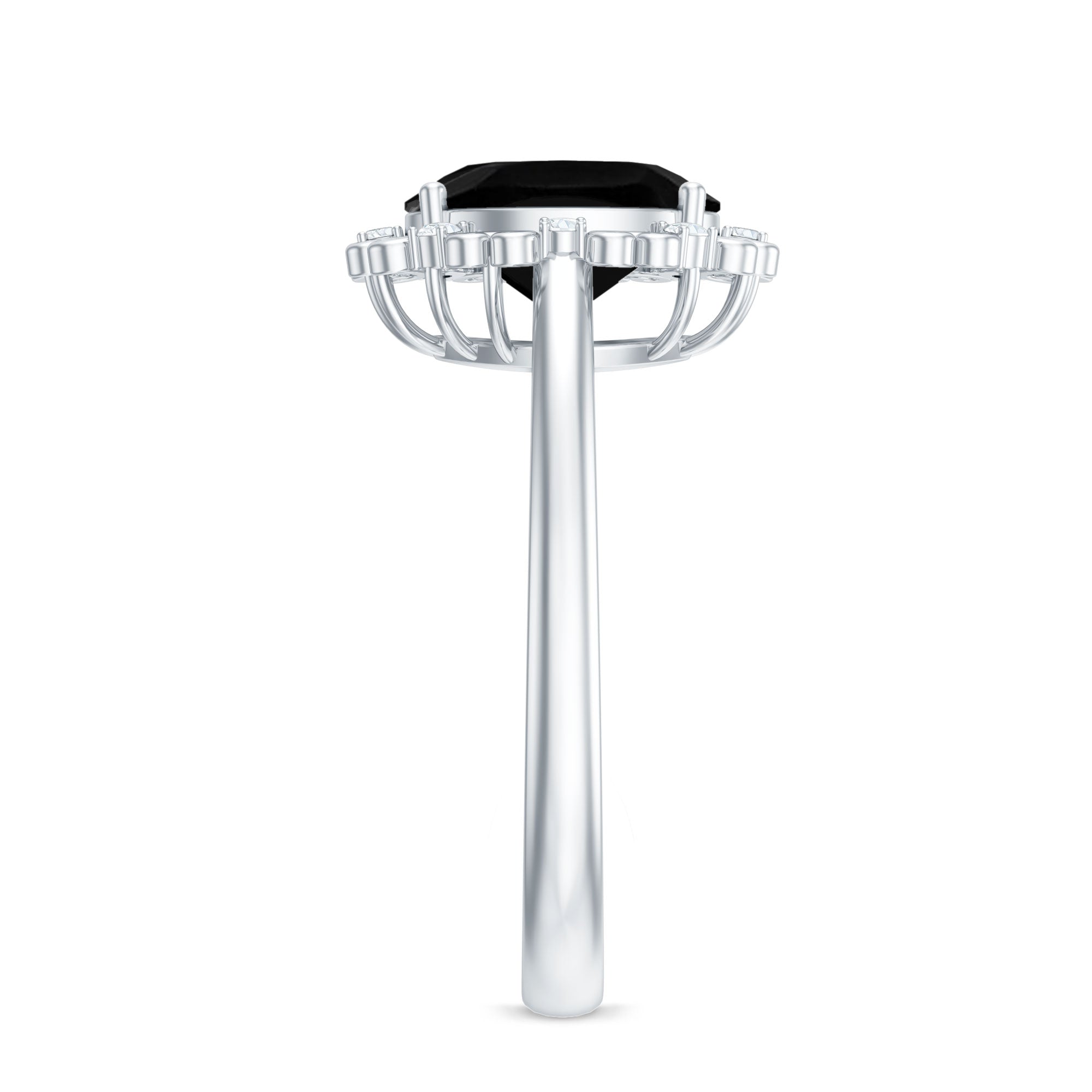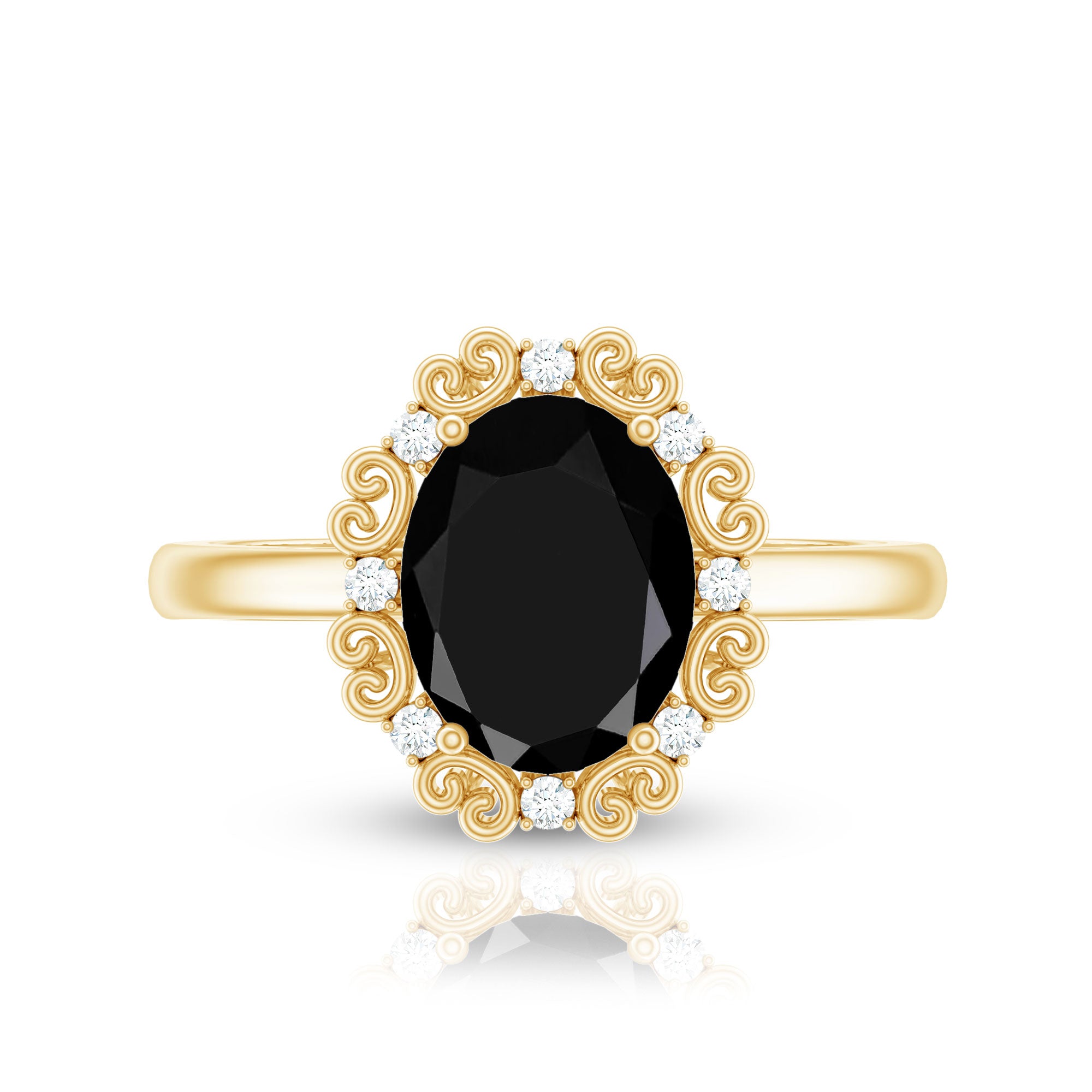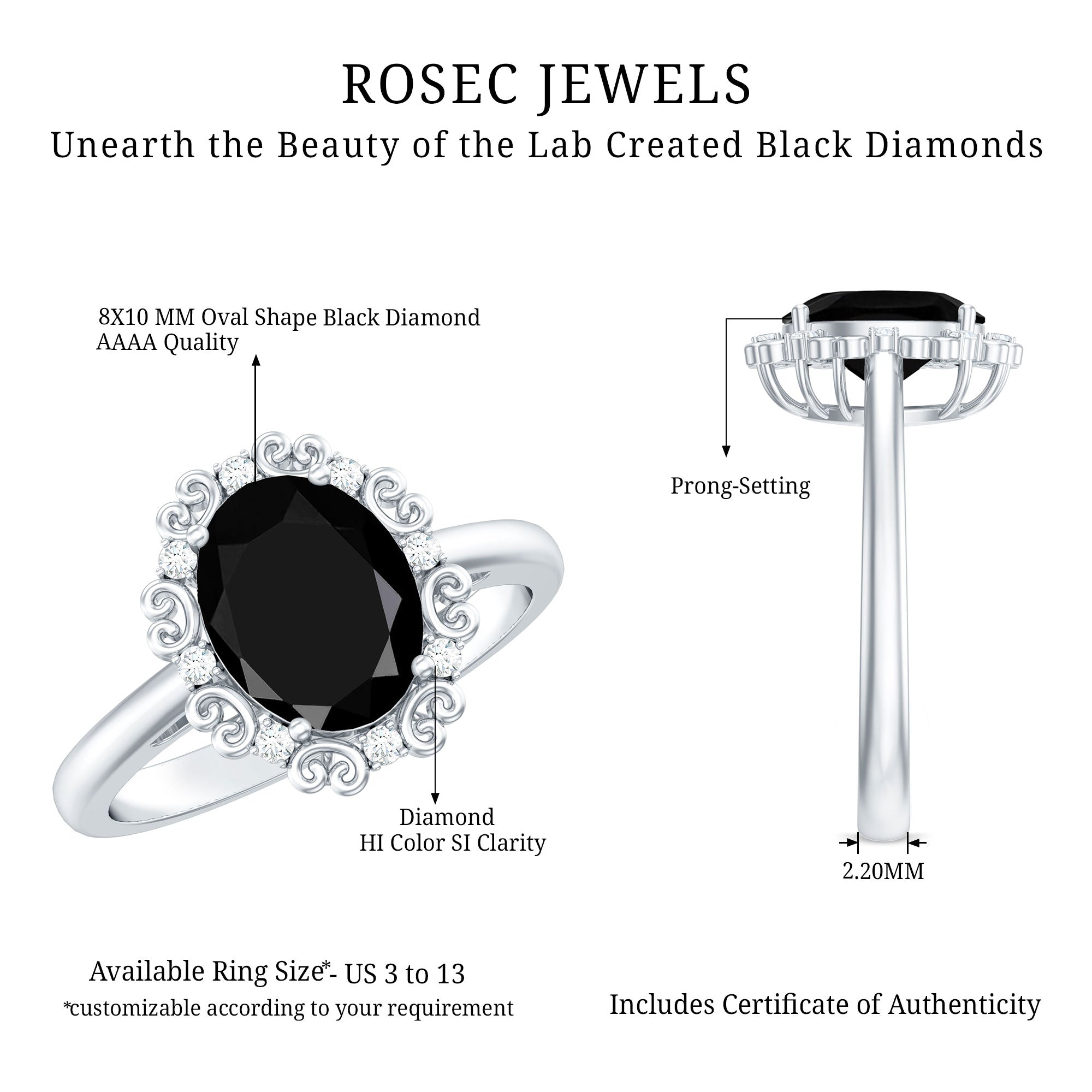 Grab this dazzling Engagement Ring showcasing an Oval Cut Lab Grown Black Diamond secured by Prong Setting with Diamond Accent. Create a priceless moment by presenting the Lab Grown Black Diamond Ring to your beloved and make her feel like a princess on her big day.