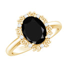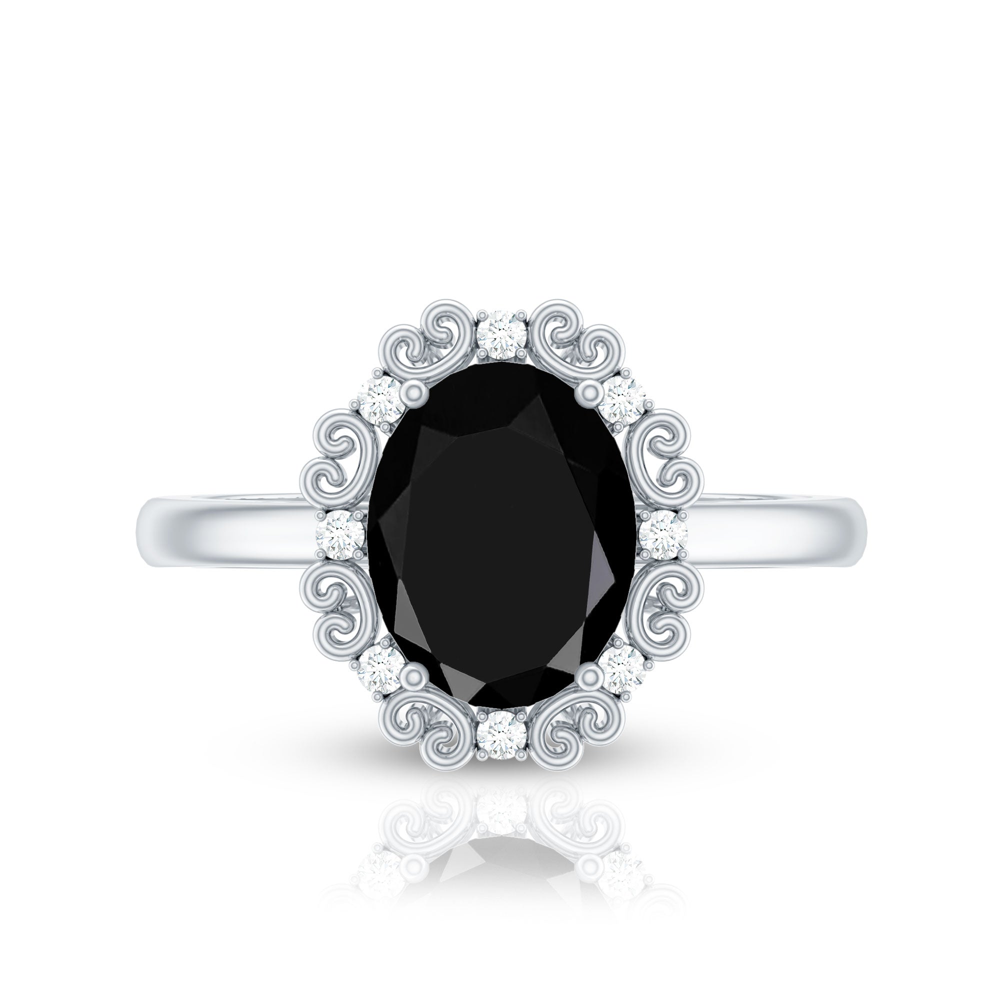 Lab Grown Black Diamond Oval Engagement Ring with Diamond