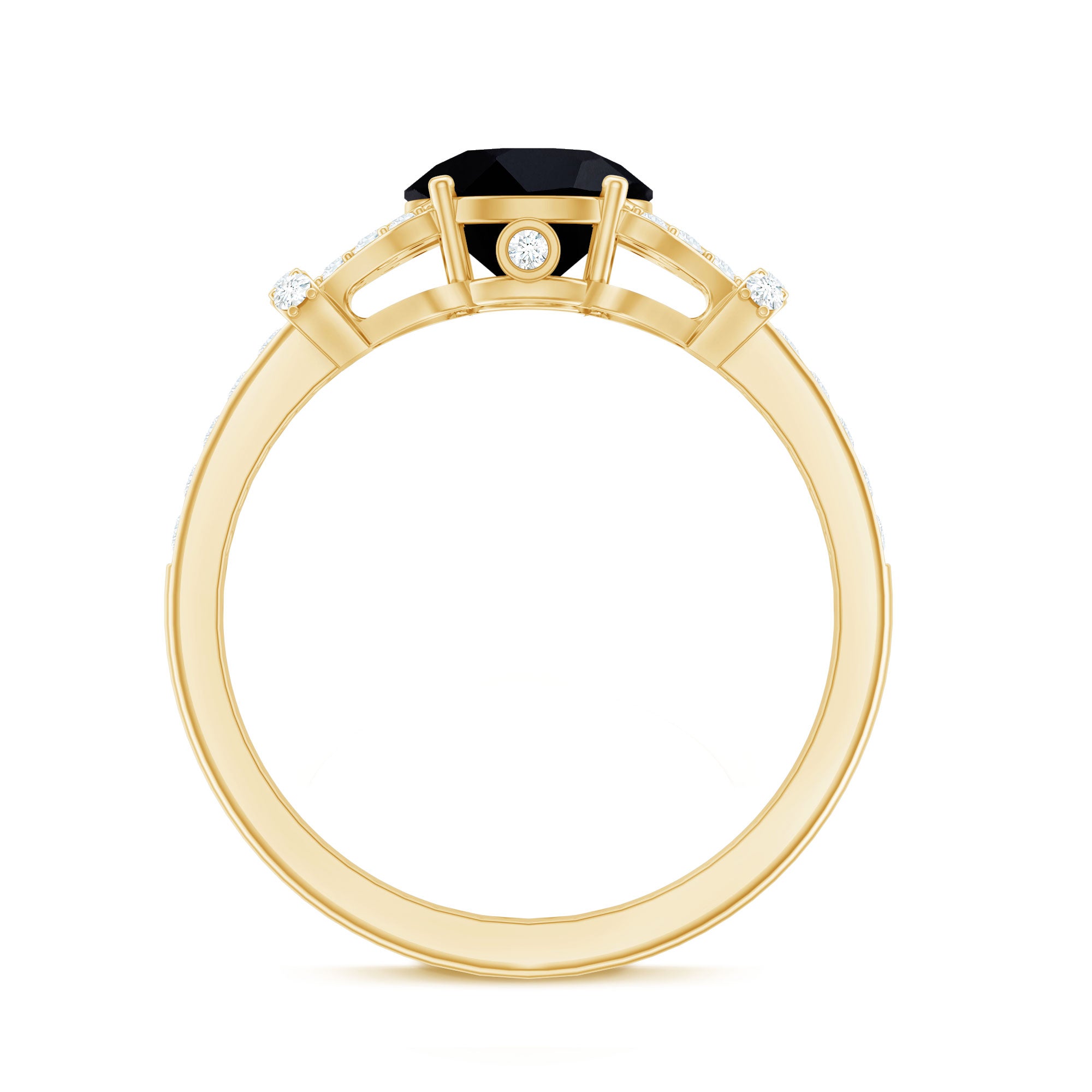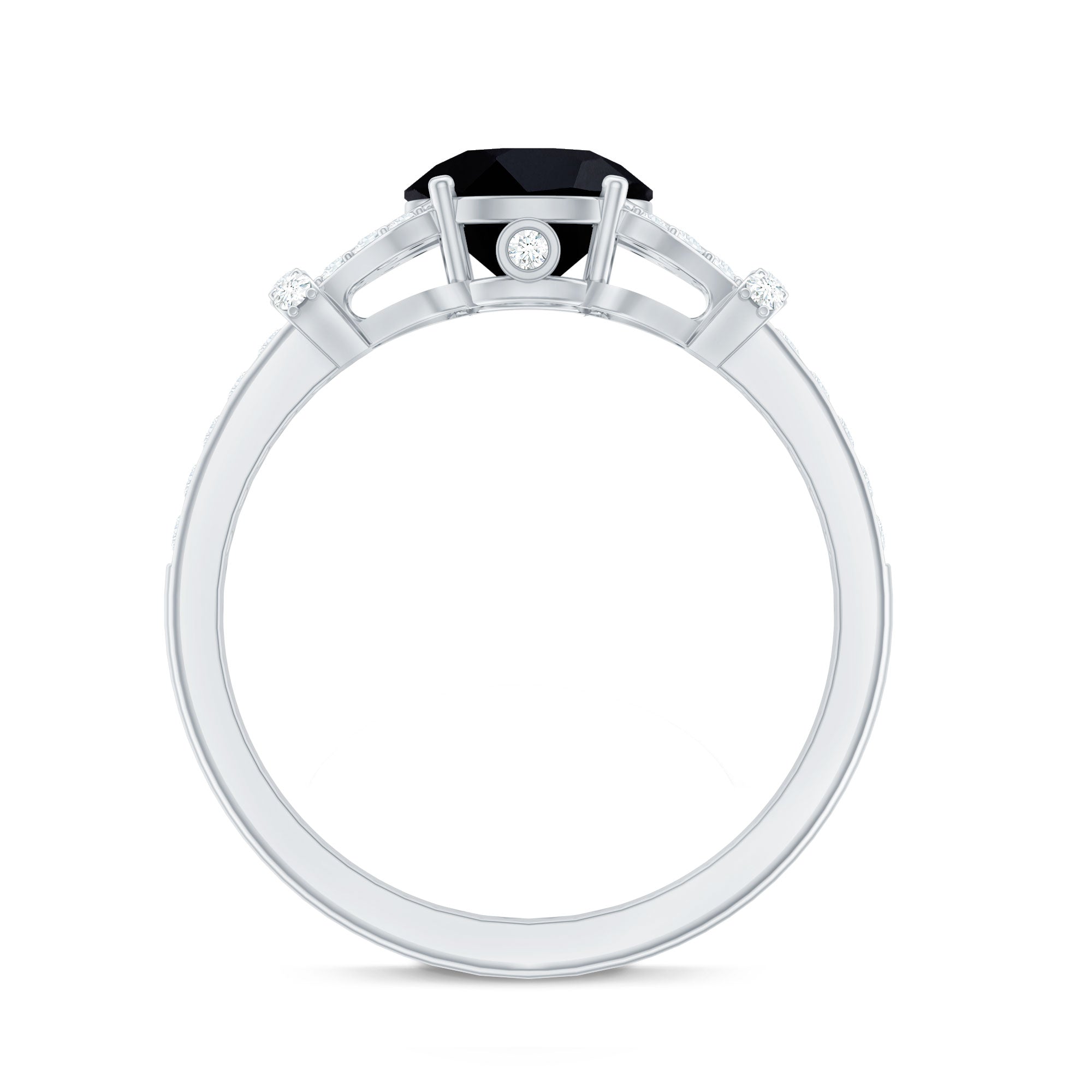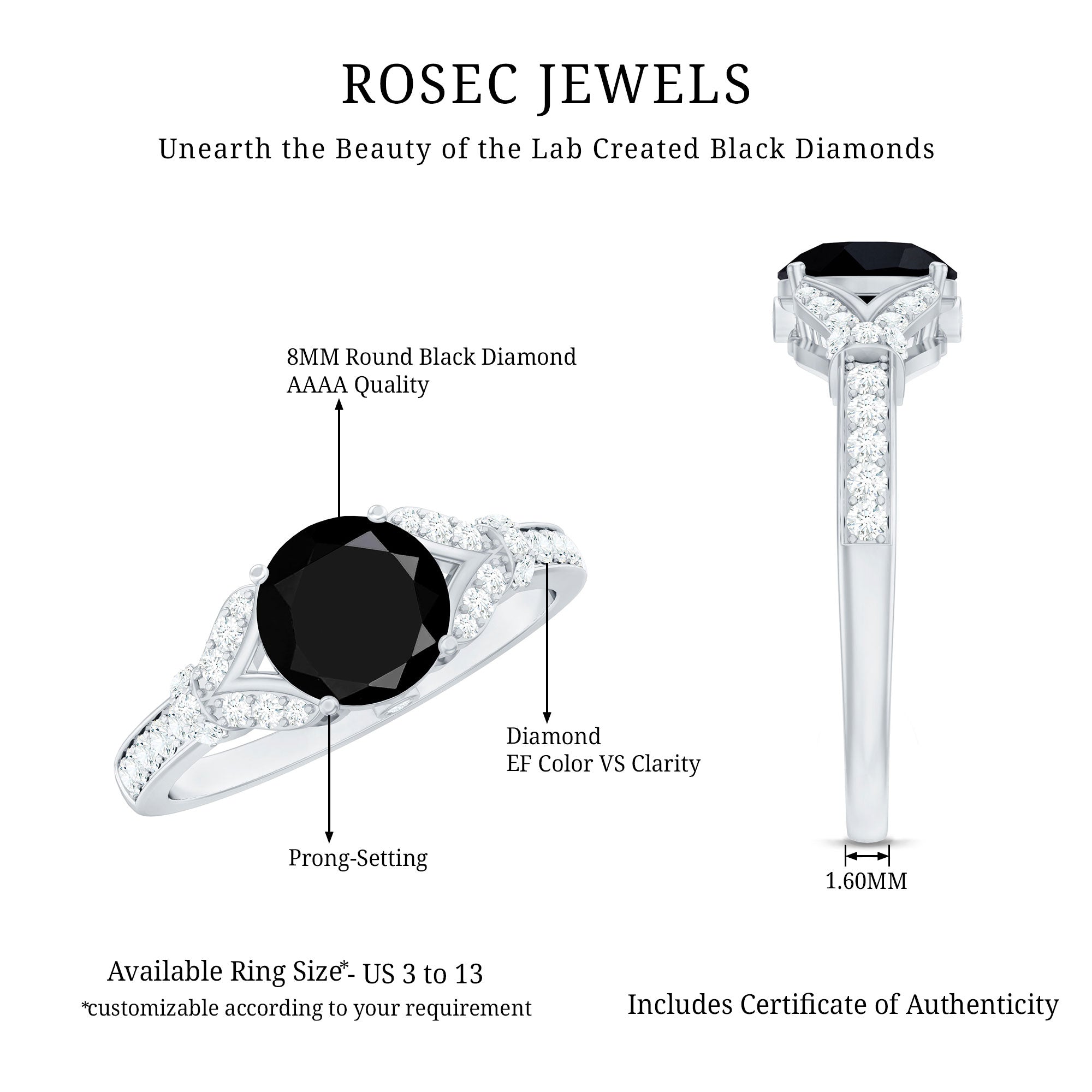 Mesmerize your beloved with this Solitaire Engagement Ring that combines modern elegance with ethical sourcing. The allure of 8 mm Round Shape Lab Grown Black Diamond is accentuated by the sparkling White Lab Grown Diamond gemstones studded over the Split Shank, creating a timeless symbol of commitment. Meticulously designed by crafted with Aaaa Quality Black Diamonds and Ef-Vs ,Quality Diamonds states the commitment for sustainable luxury. This Black Diamond Ring (Synthetic) captures attention and is a perfect choice for celebrating your love.