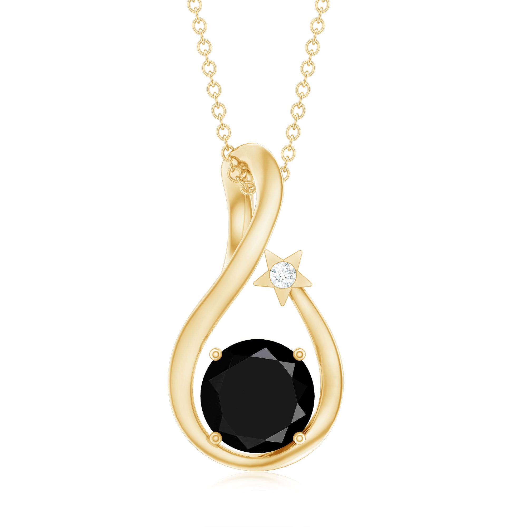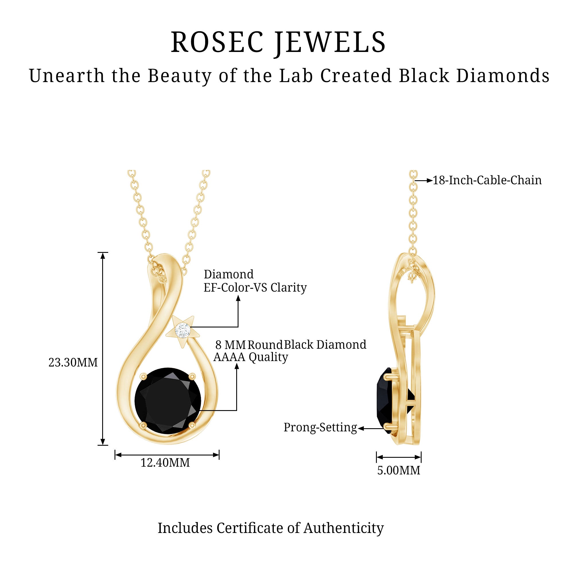 Adorn yourself with timeless elegance by wearing the Solitaire Pendant adorned with an 8 mm Round Shape Black Diamond, set in Prong Setting, exuding sophistication and allure. Set in a delicate pendant, the unique allure of Synthetic Black Diamond is enhanced by a minimalist star design encased with a delicate White Lab Grown Diamond, ensuring versatility for any occasion. Meticulously crafted with Aaaa Quality Black Diamond and Ef-Vs Diamond, this Black Diamond Pendant reflects Rosec Jewels commitment to quality.