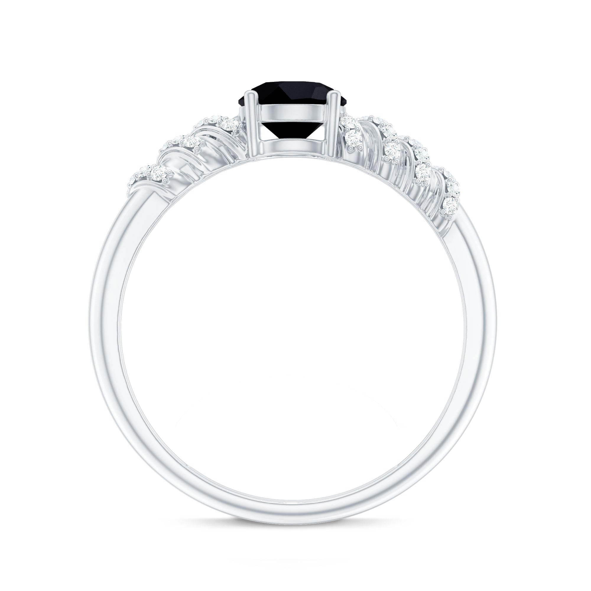 Profess everlasting love with this mesmerizing lab grown Black Diamond Ring that captivates with 6 mm Round Shape Black Diamond of Aaaa quality set as a center stone in Prong Setting. Accentuated by dainty sparkling White Lab Grown Diamond gemstones set in wave pattern over the band, the Solitaire Promise Ring emanates timeless elegance. Elevate your promise with this stunning Black and White Diamond Ring (Unnatural) that combines modern luxury and conscious craftsmanship. Designed with simplicity, this Black Stone Ring is also budget-friendly, proving that timeless beauty doesnt have to come at a high cost.