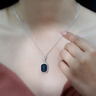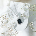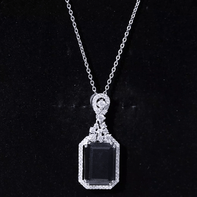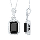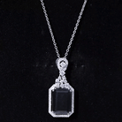 Reminding of the unique journey, this Lab Grown Black Diamond Necklace, encapsulates moments, emotions and aspirations. Crafted from White Gold Plated Silver, this Bridal Necklace is embellished with 10X14 MM Emerald Cut Lab Grown Black Diamond in Double Prong Setting with the Moissanite Halo. With Round brilliant cut Moissanite as a Cluster, sitting on top of the main gemstone, makes it a perfect Art Deco style piece of jewelry that is sure to make a statement. As a perfect show-stopping Emerald Cut Necklace, it has timeless elegance and vibrant allure. Having a bold design and simply captivating, this Wedding Necklace has unrivaled beauty that has stood the test of time, as a true symbol of elegance and everlasting love. The AAAA Quality Lab Grown Black Diamond and D-VS1 Quality Moissanite create a captivating contrast, evoking a sense of opulence and refined taste. With its captivating beauty and modern aesthetics, it will always hold a special place in her heart.