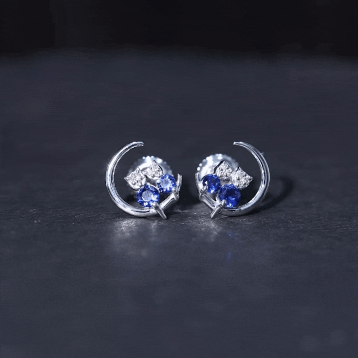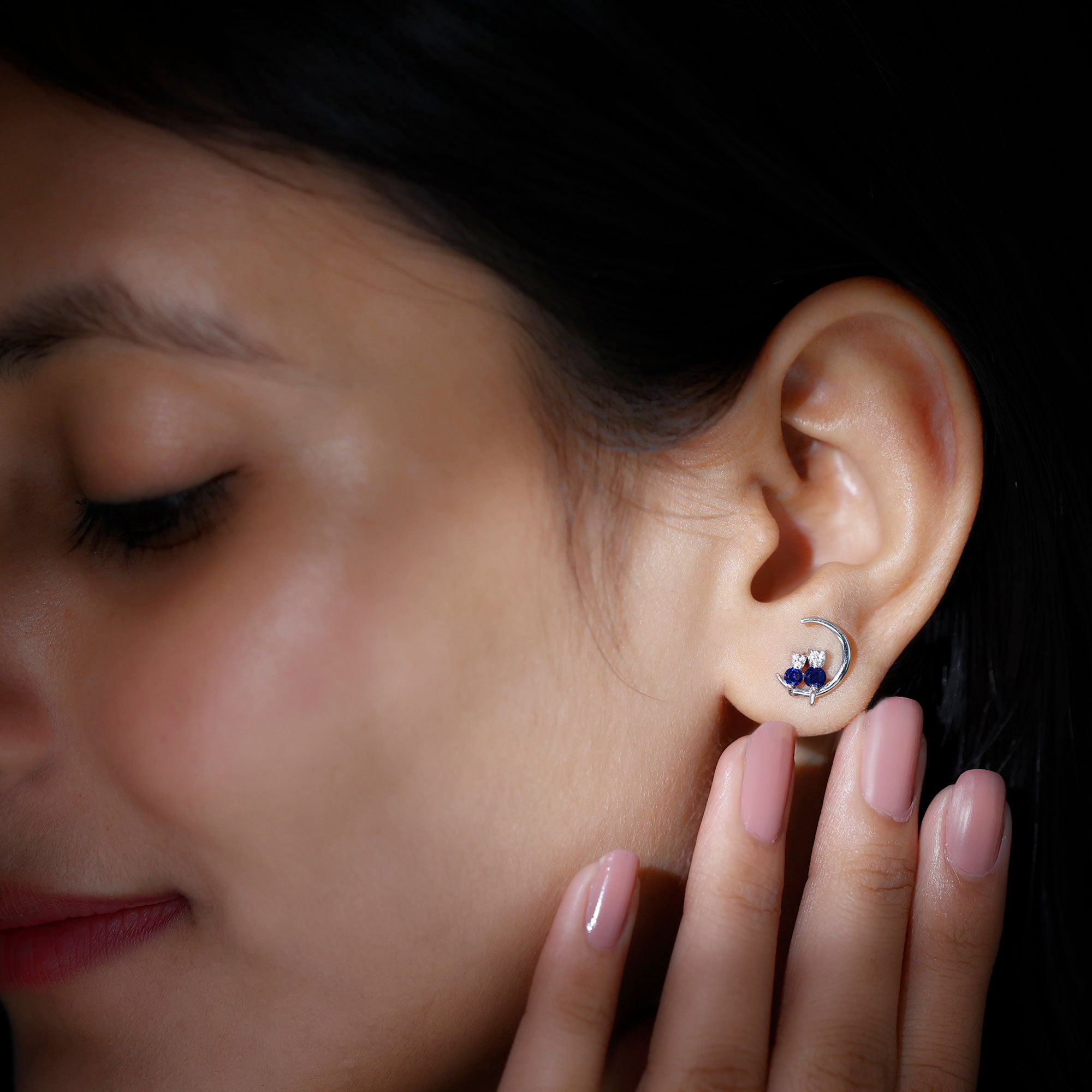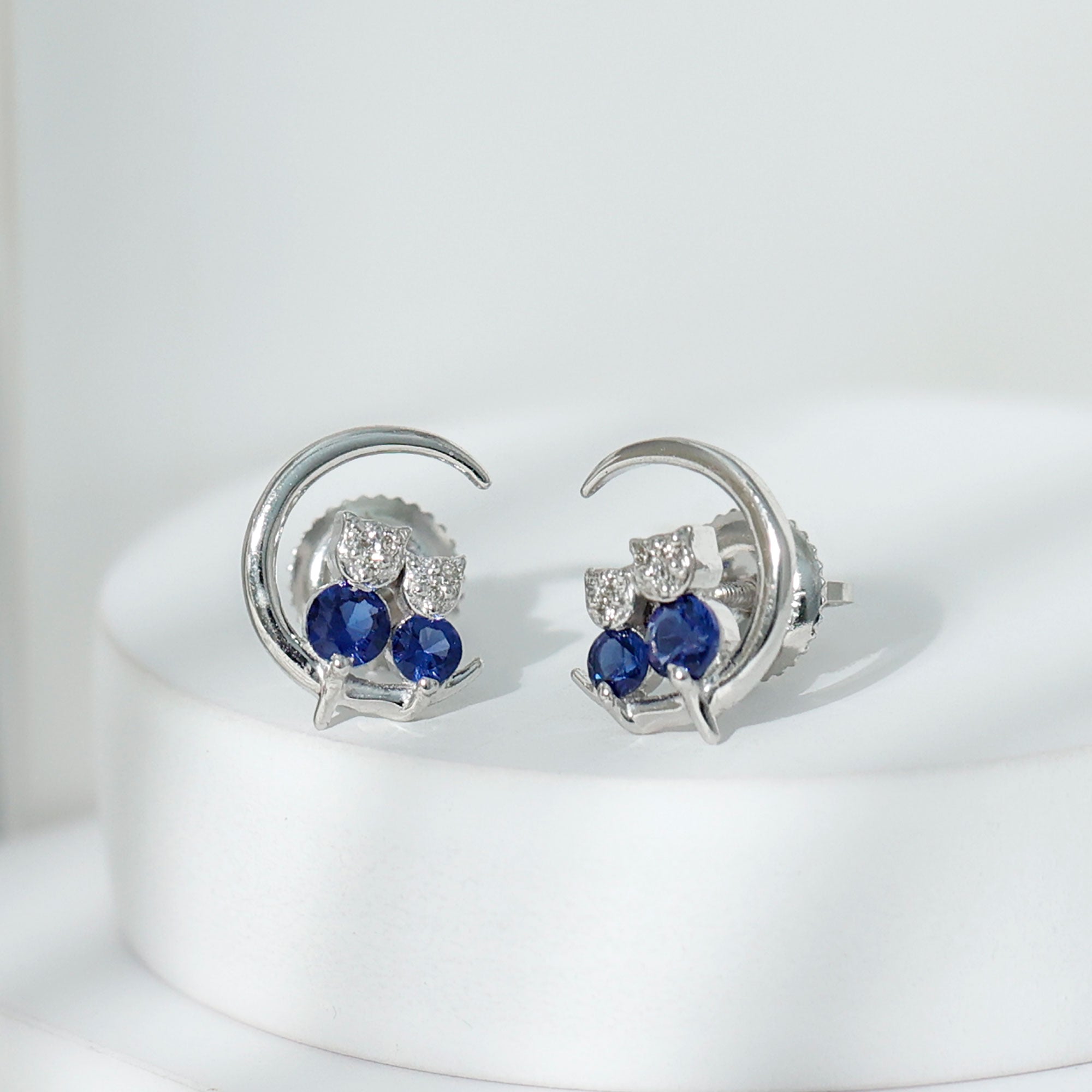 Make her birthday extra special by getting her these adorable Cat and Moon Earrings. These earrings feature two cute cats perched on a crescent moon, and theyre decorated with shiny Round Shape Lab Grown Blue Sapphire and Diamond Gemstones, adding a touch of charm to her style. Plus, these Stud Earrings have a Screw Back Closure, so they stay securely in place, and she wont have to worry about losing them.