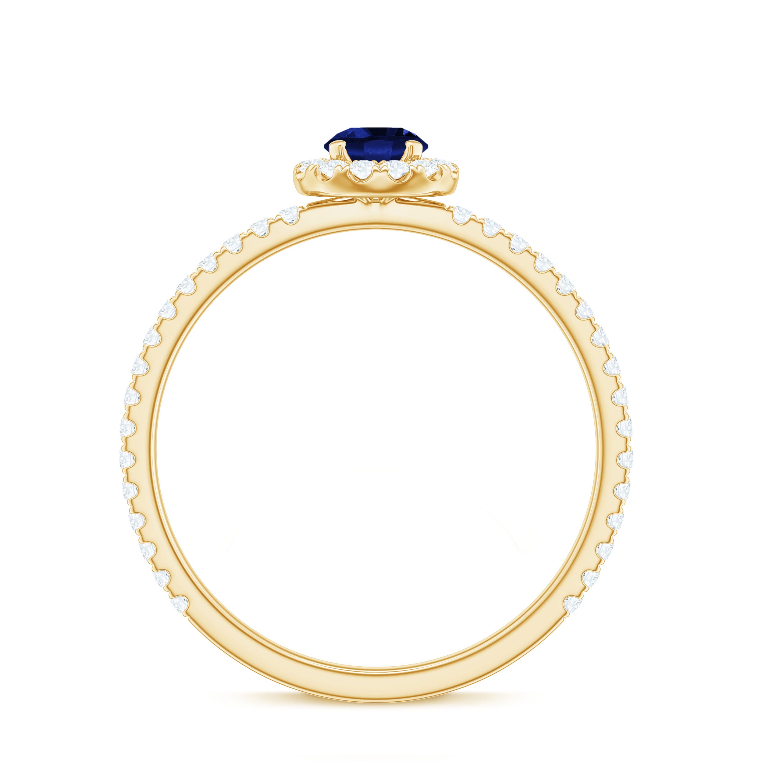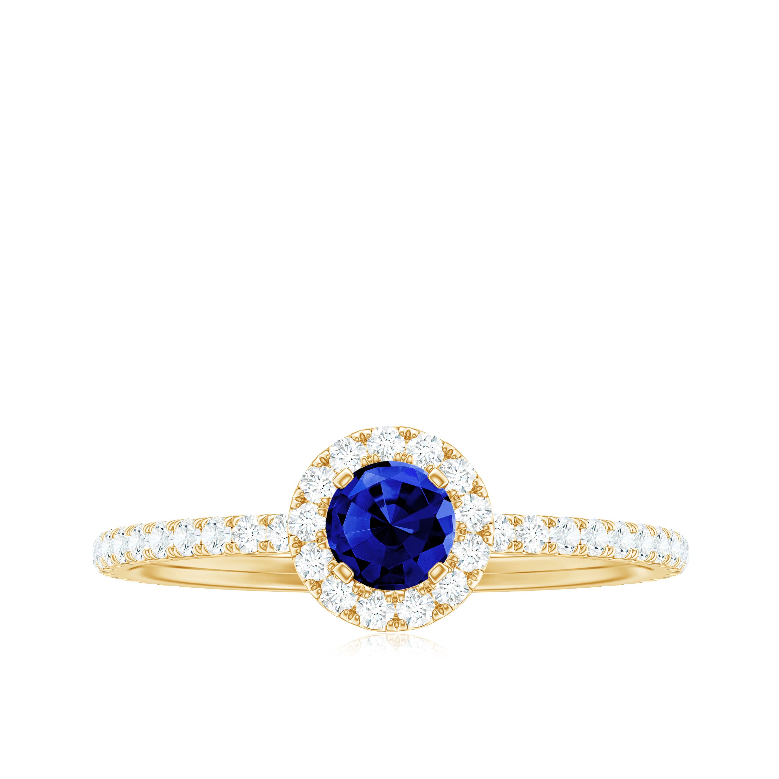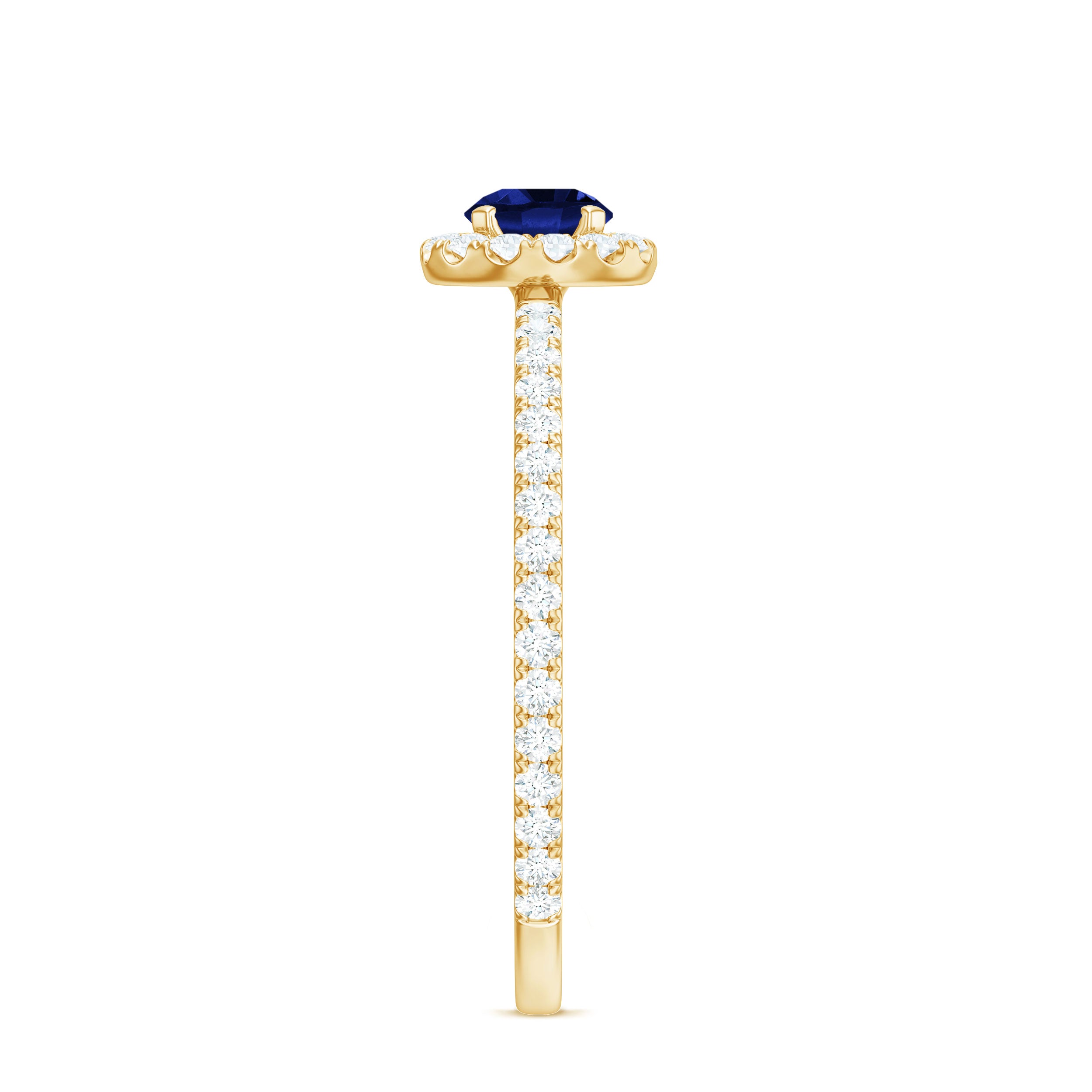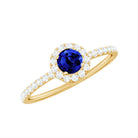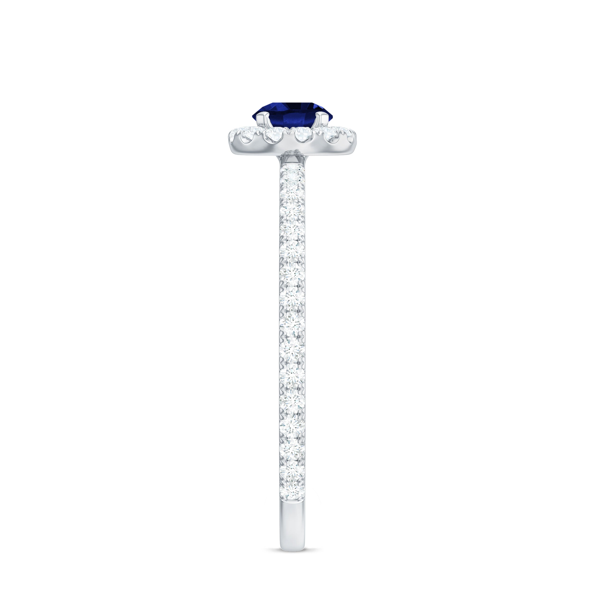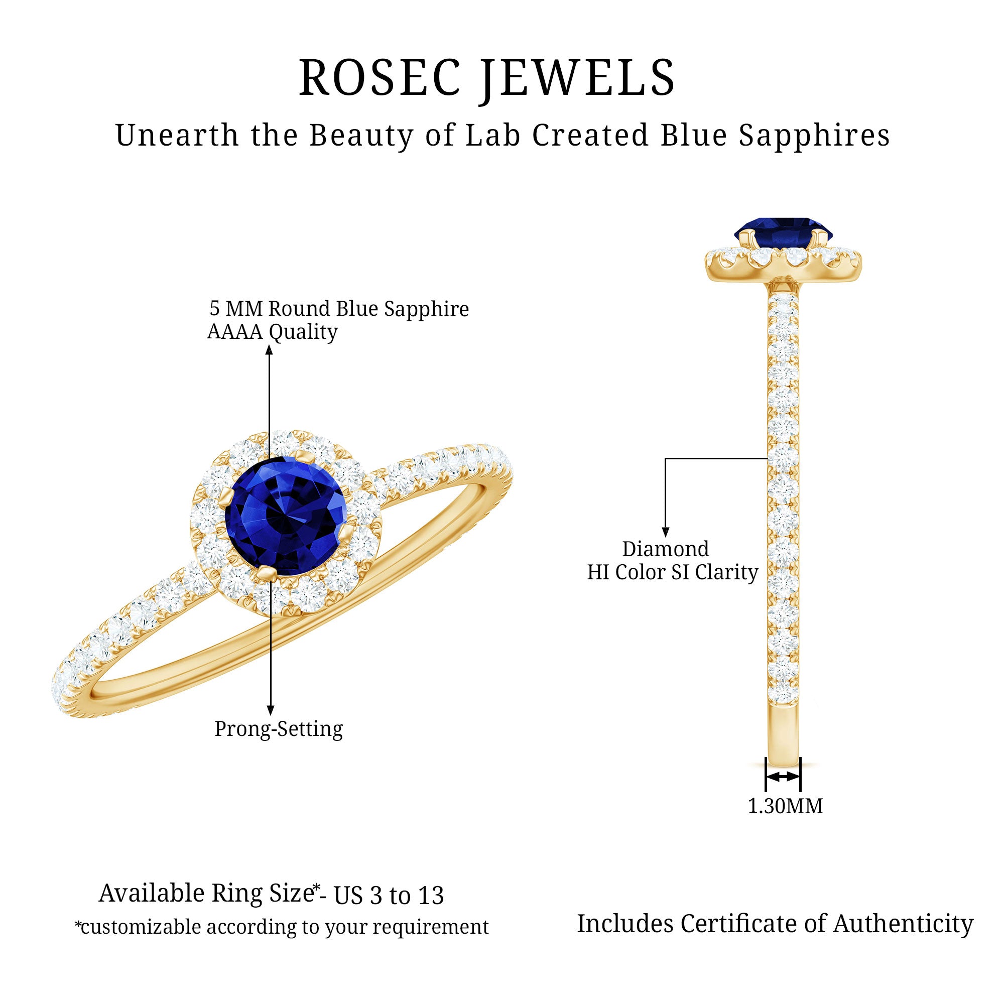 This Engagement Ring is embellished with Round Shaped Lab Created Blue Sapphire and Diamond. This Created Sapphire Solitaire Ring is an ideal choice for showcasing your individuality and expressing your authentic self. Prepare to make a lasting impression with this captivating piece that combines elegance and uniqueness in perfect harmony.