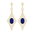 Lab Grown Blue Sapphire Dangle Drop Earrings With Diamond
