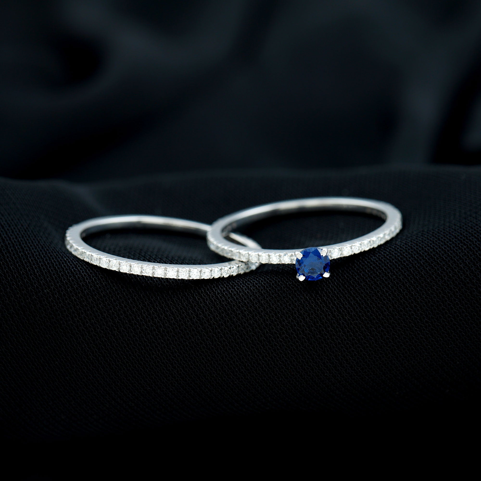 Lab Grown Blue Sapphire Engagement Ring with Diamond Wedding Band