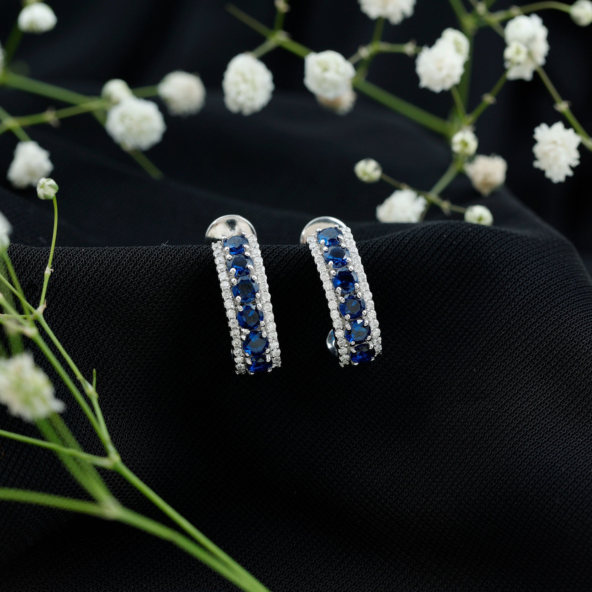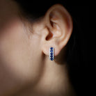 Lab Grown Blue Sapphire Half Hoop Earrings with Moissanite