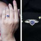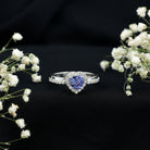 Heart Shaped Created Blue Sapphire Halo Engagement Ring