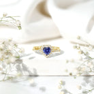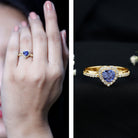 Here is something unique for her, the Created Blue Sapphire Ring to make that moment magical. Adorned with Heart Shaped Created Blue Sapphire exquisitely set in prong setting encircled by the halo of Diamonds, it adds a touch of grace to the overall design. Additional Diamonds lined on the shank create an enchanting appearance. The delightful blue allure and sparkles of diamonds exude an unmatchable brilliance making this Halo Ring an essential accessory for her. Make your proposal unforgettable with this Heart Engagement Ring, a beautiful symbol of love and an unbreakable bond.