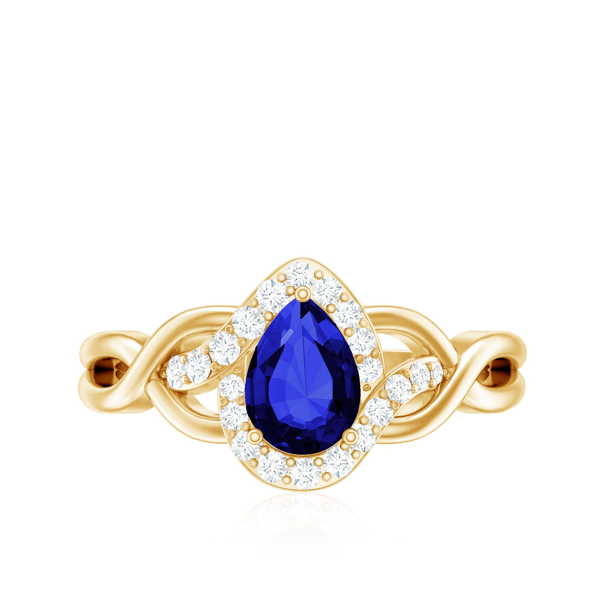Lab Grown Blue Sapphire Pear Shape Engagement Ring with Diamond Halo