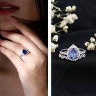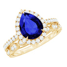 Lab Grown Blue Sapphire Pear Shaped Engagement Ring Set
