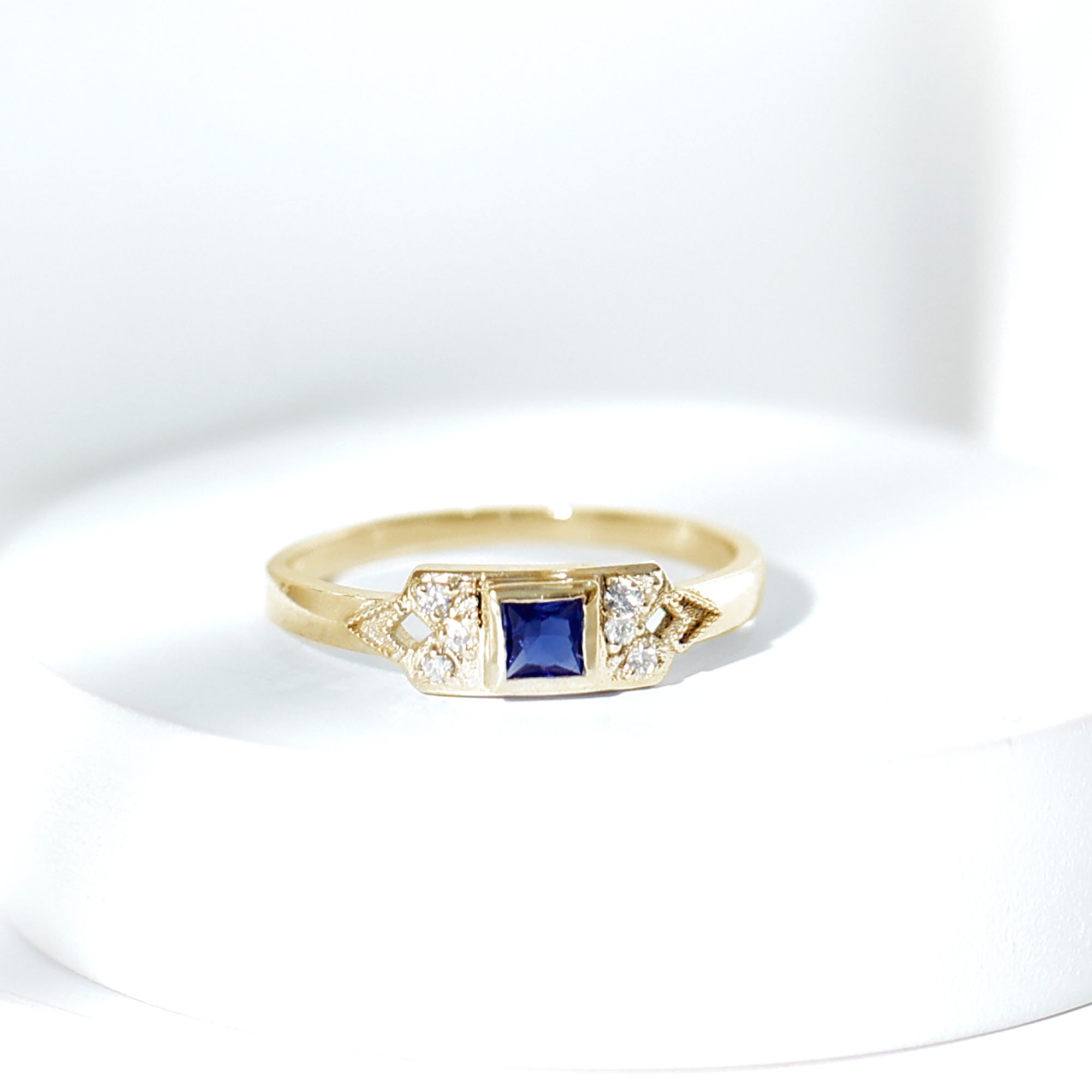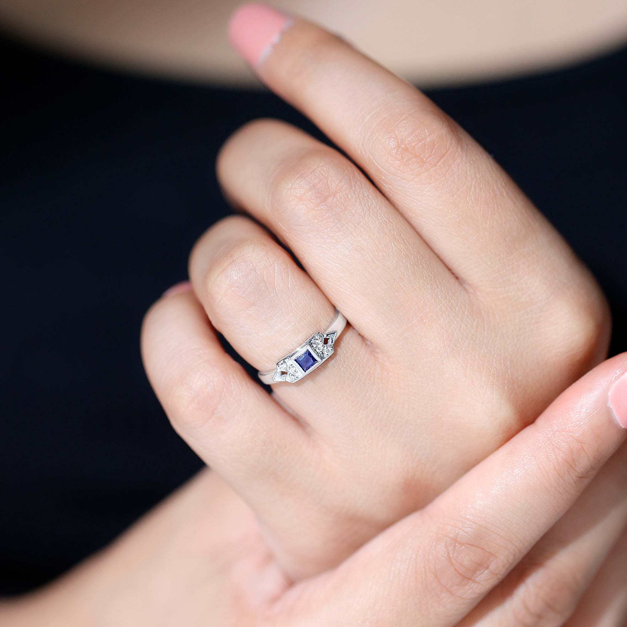 Lab Grown Blue Sapphire Promise Ring with Diamond