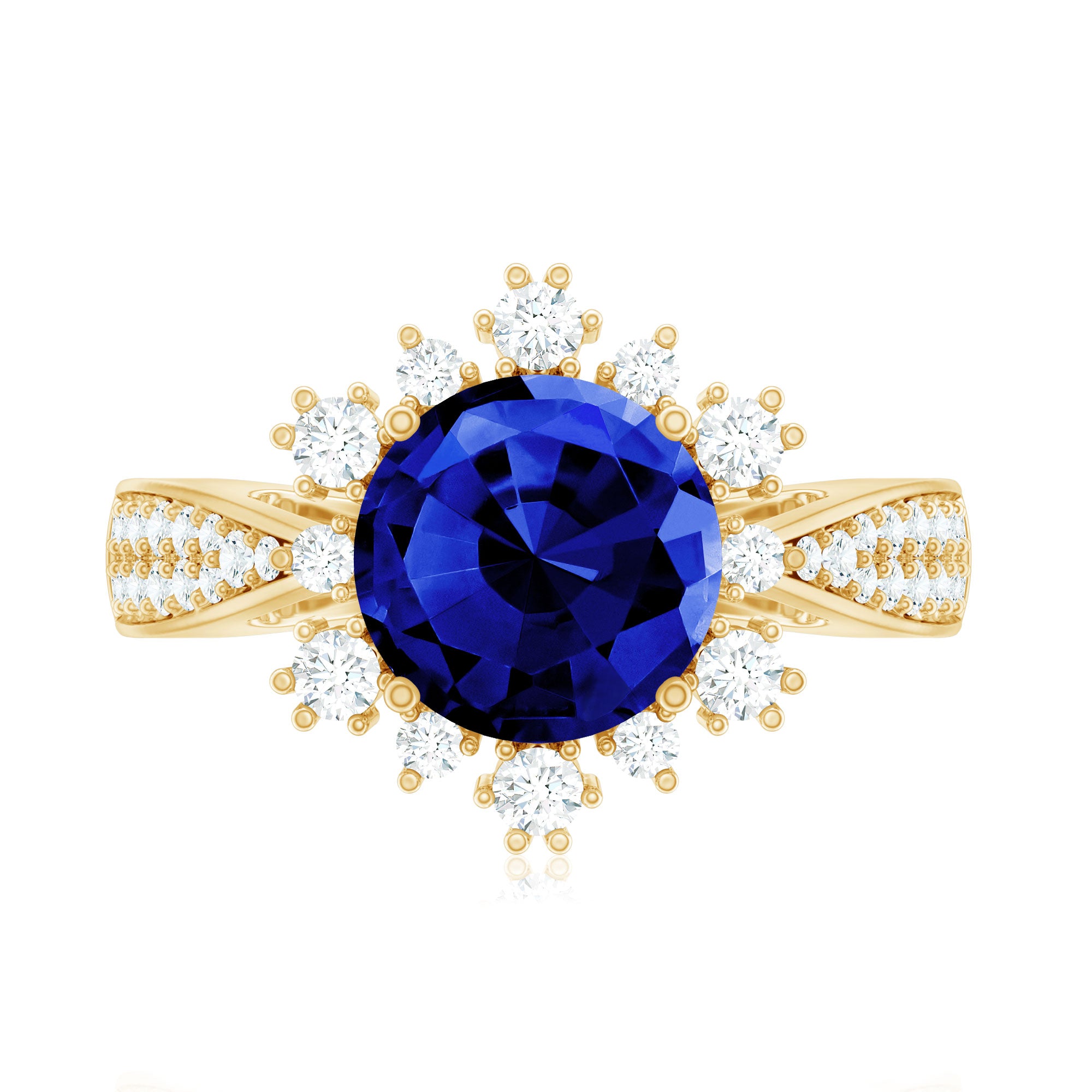Lab Grown Blue Sapphire Round Engagement Ring with Diamond Accent