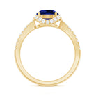 Lab Grown Blue Sapphire Round Engagement Ring with Diamond Halo