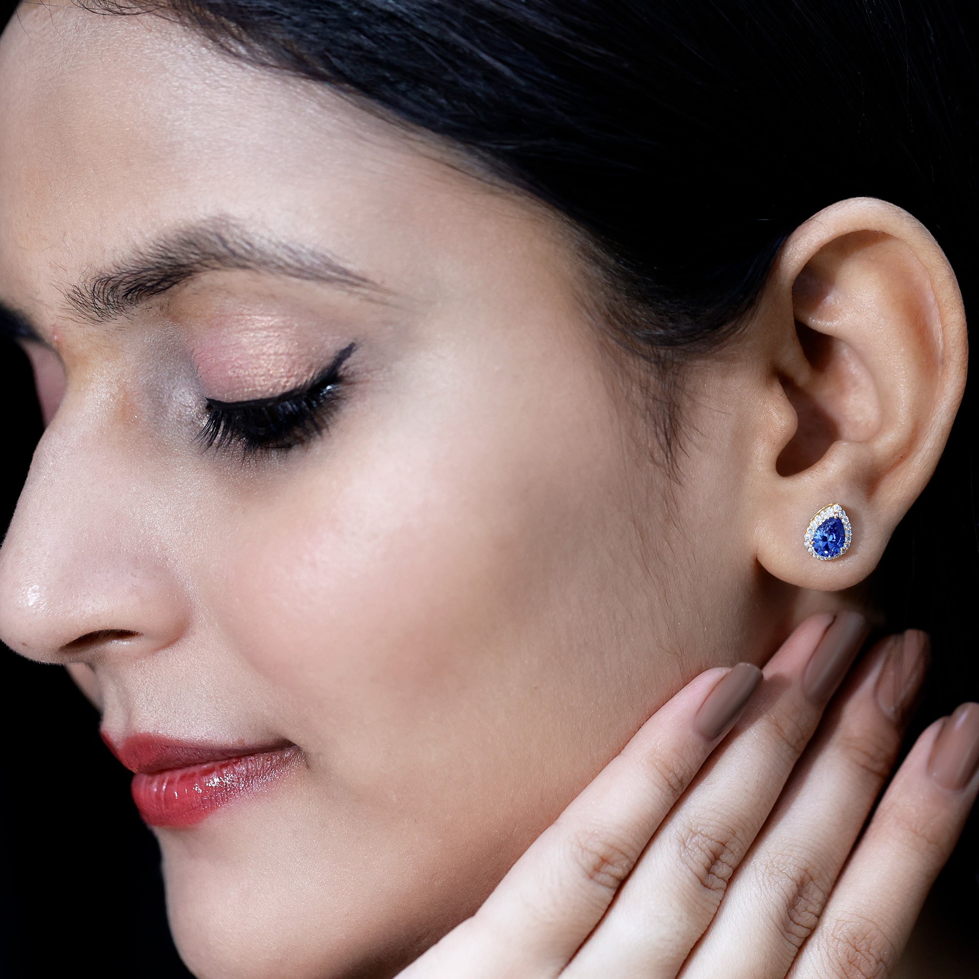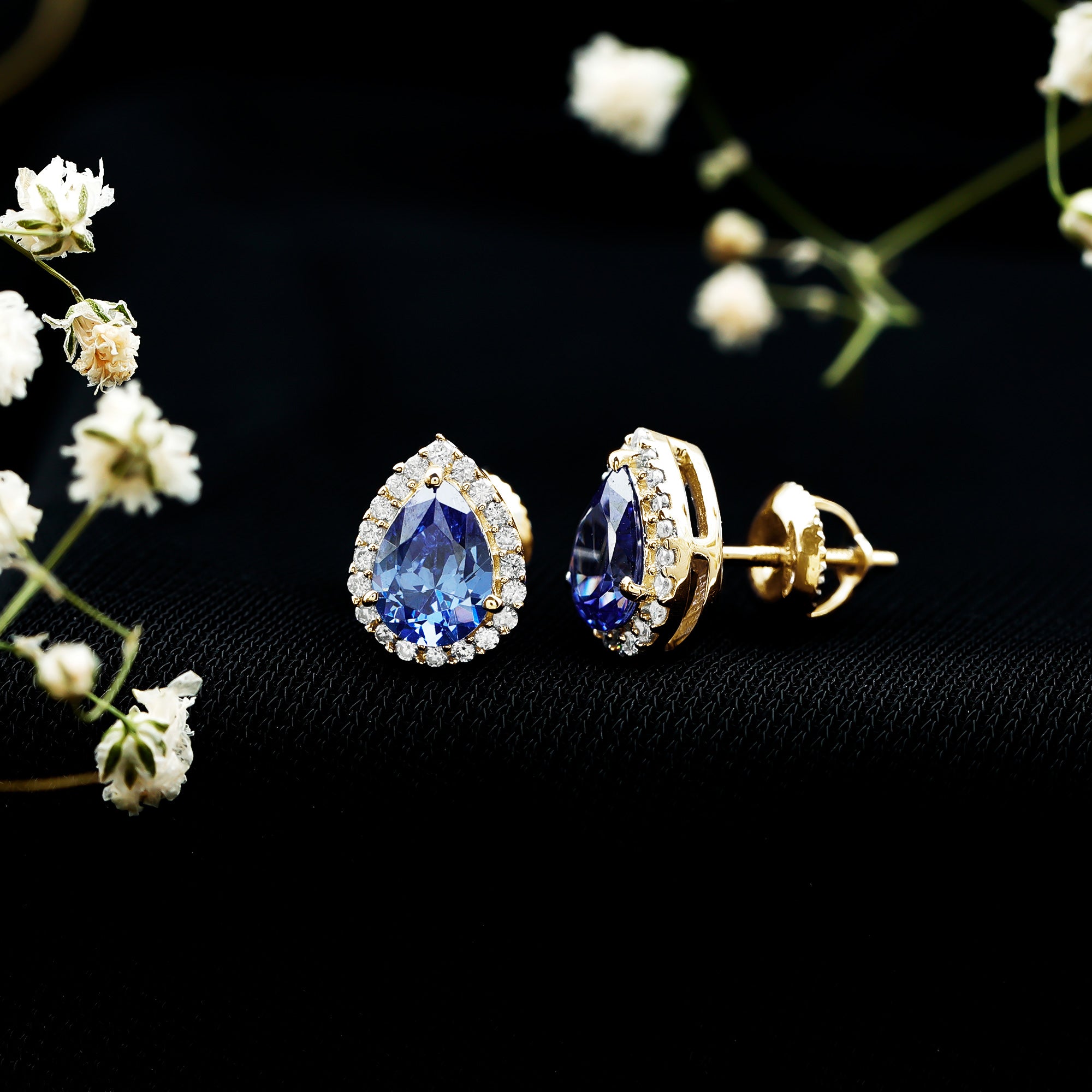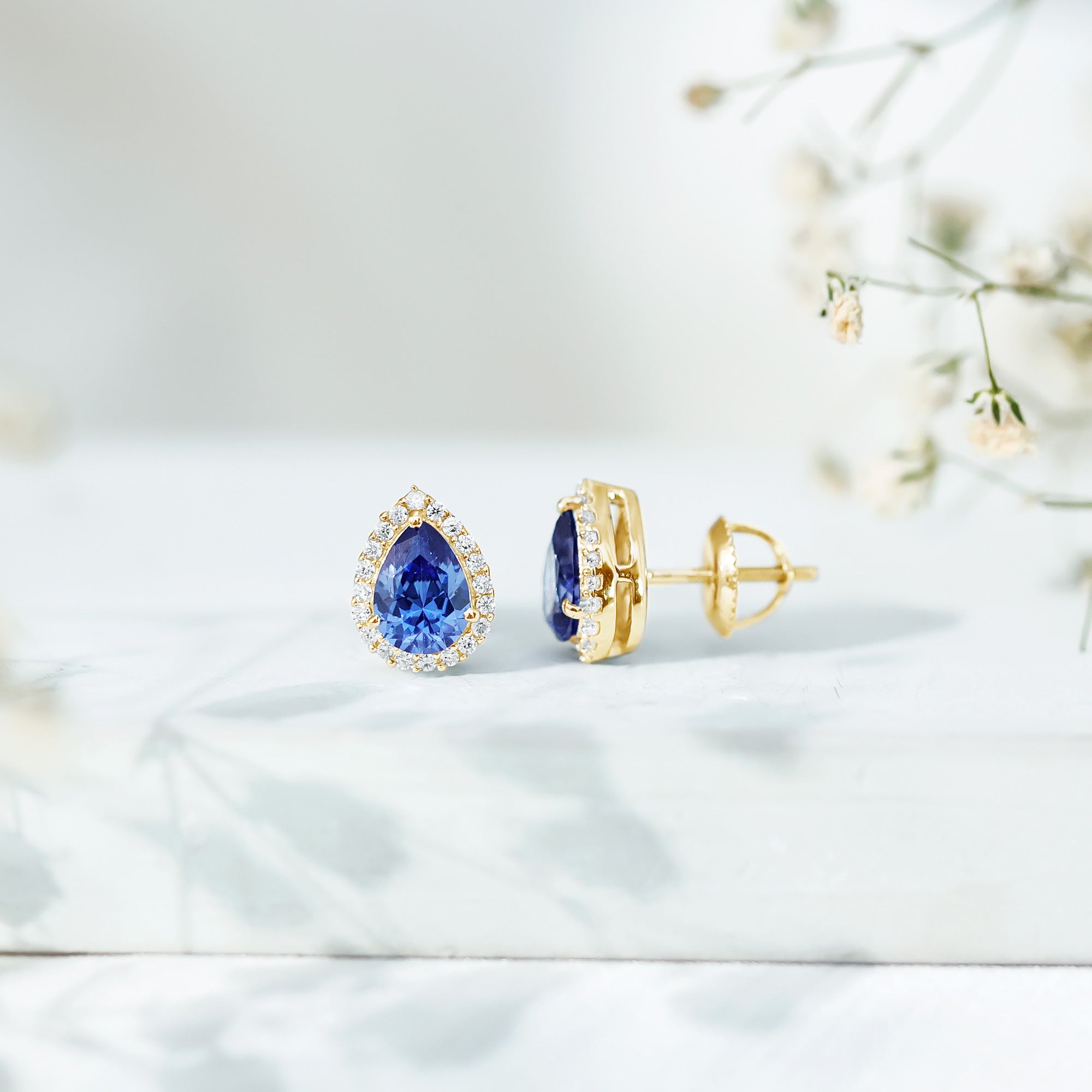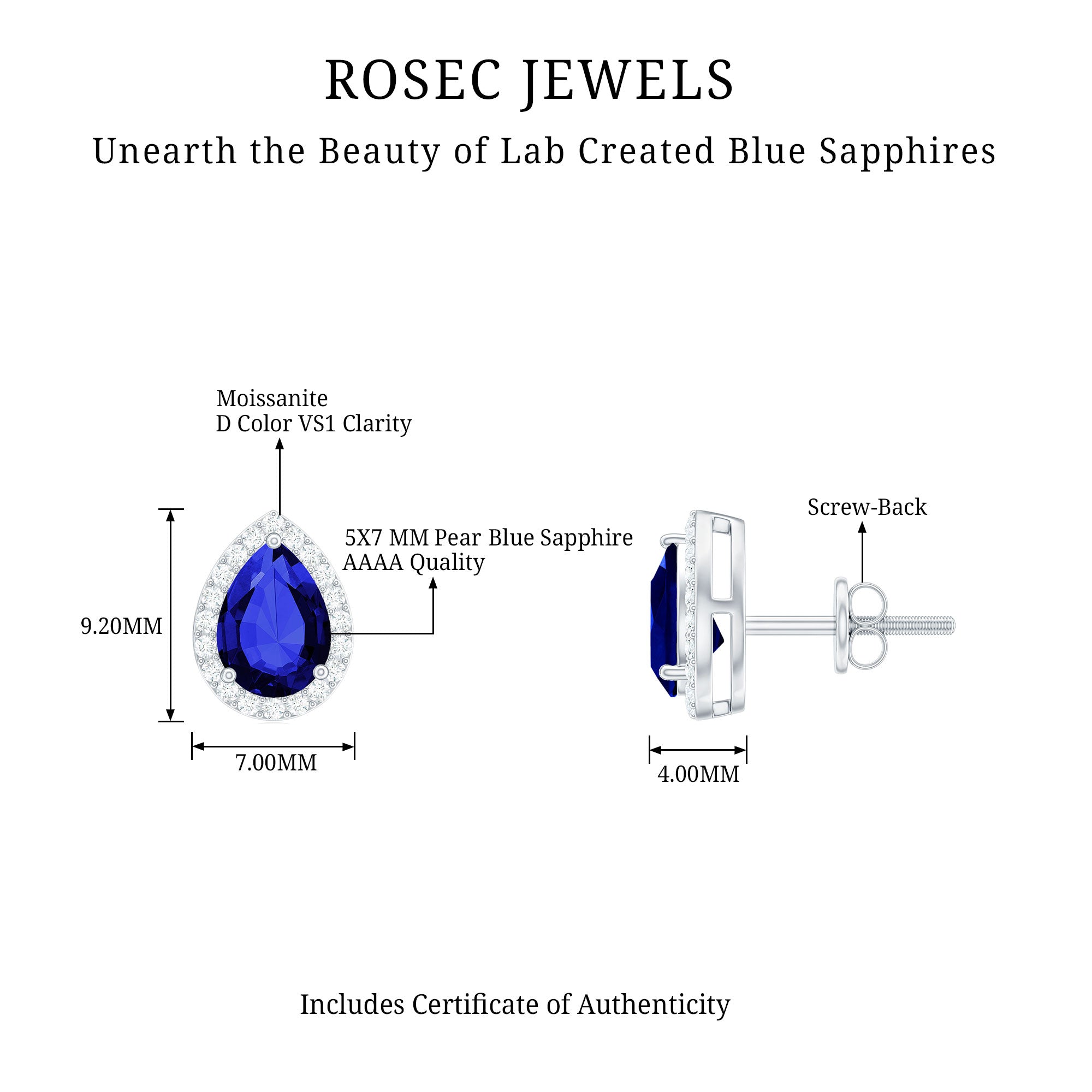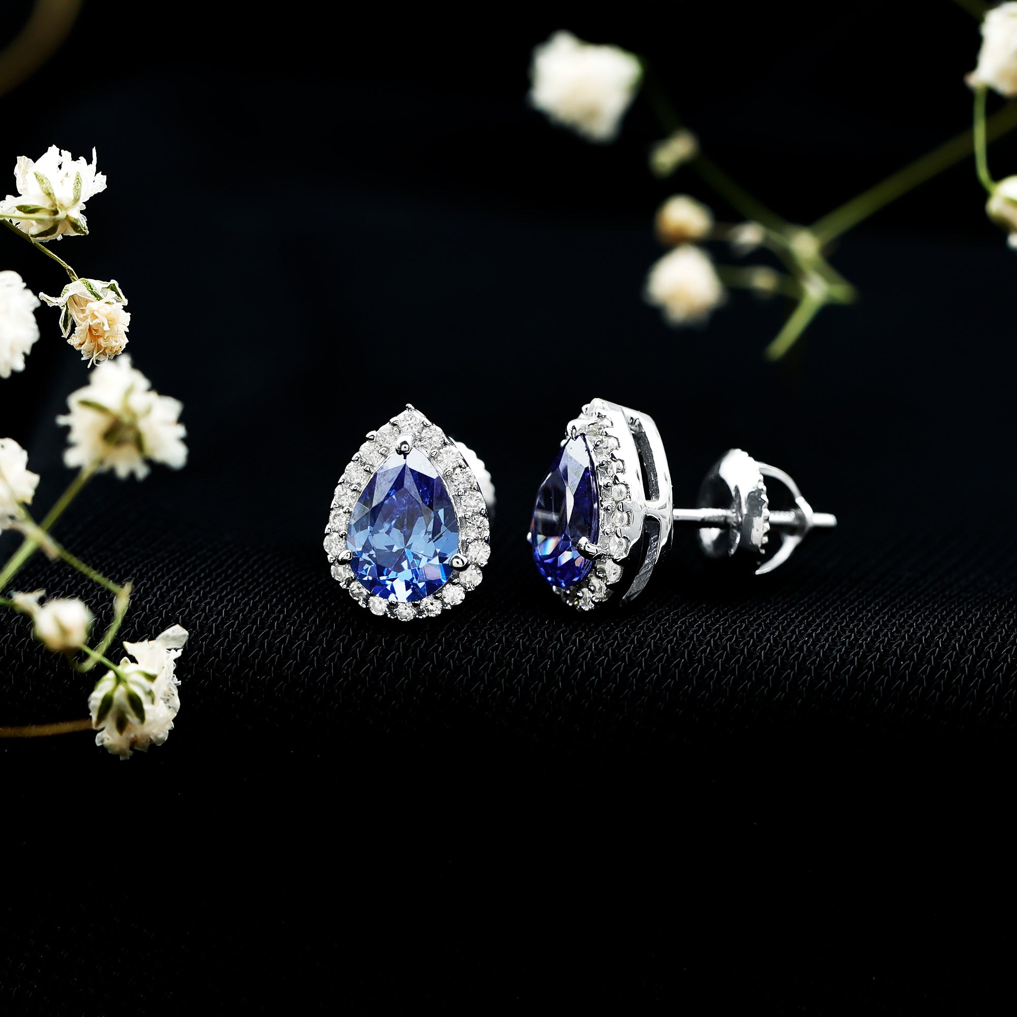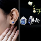 Get a stylish and attention-grabbing appearance with these Classic Halo Stud Earrings. The design features a 6X8 MM pear shaped lab created blue sapphire, carefully set in secure prong setting to highlight its beautiful shape. Surrounding the sapphire is a halo of round moissanites adds extra sparkle, enhancing the overall shine and making the Blue Sapphire Stud Earrings stand out. Ideal for anyone who loves jewelry that feels both modern and classic, these Teardrop Stud Earrings can easily be worn for special evenings or to add a touch of sophistication to everyday outfits. The secure screw back closure ensures they stay comfortably in place all day long, making them reliable for daily wear. They sparkle with elegance and are designed to catch the eye. The Pear Shaped Earrings bring a perfect blend of style and grace. Lightweight and easy to wear, these Sapphire and Moissanite Earrings bring a subtle yet striking sparkle that suits a wide range of styles, making them a valuable addition to any jewelry collection.