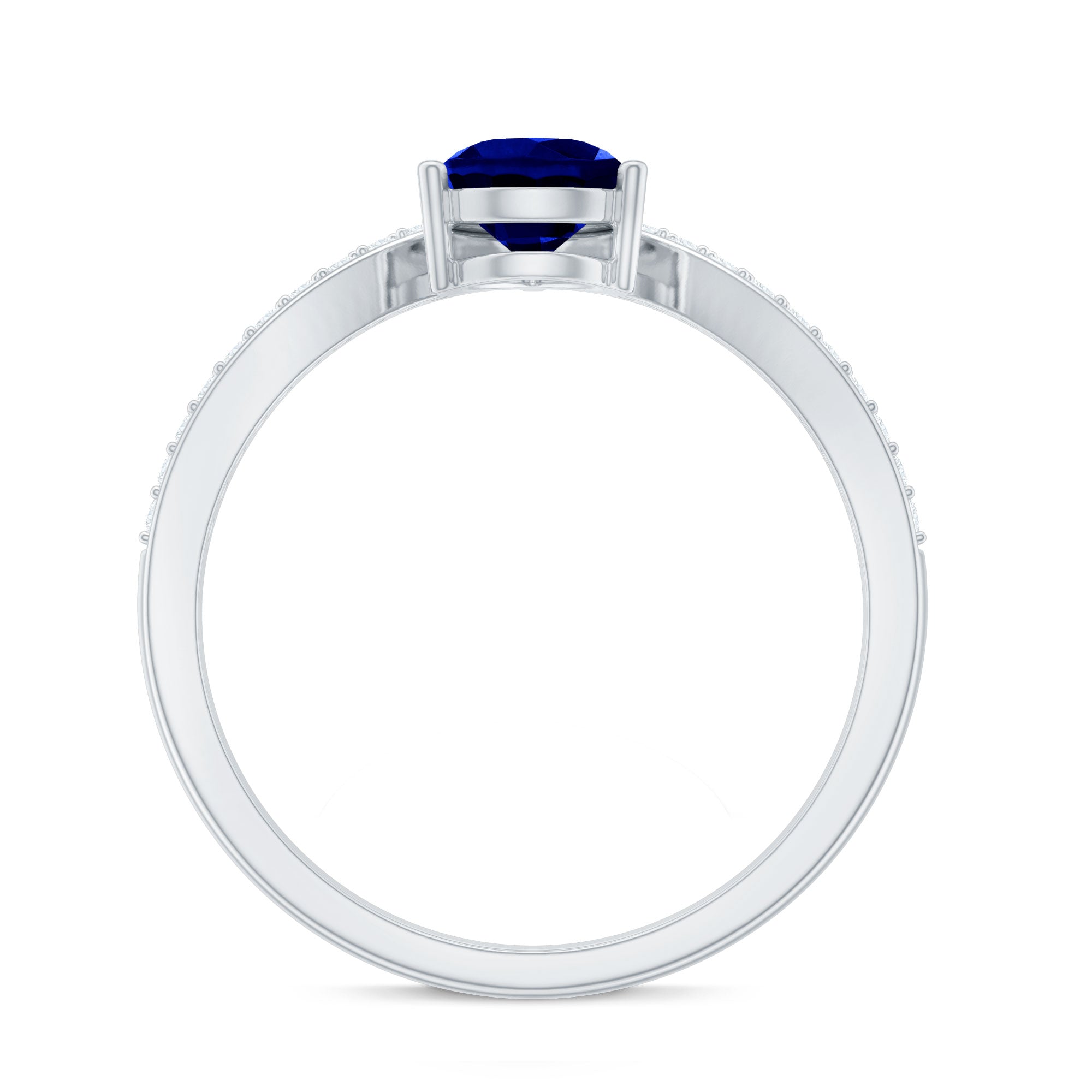 Lab Grown Blue Sapphire Teardrop Engagement Ring With Diamond
