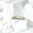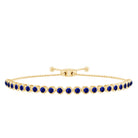 Radiant blue elegance flows effortlessly through this Lab Grown Blue Sapphire Bracelet, designed to bring beauty and charm to any wrist. Half of the bracelet glimmers with round cut lab made blue sapphires arranged in secure prong setting. The Tennis Bolo Bracelet is further enhanced with a sleek rope chain design, adding comfort, flexibility, and a touch of understated sophistication. A sliding bolo clasp allows easy adjustment, ensuring a perfect and secure fit for any wrist size. This thoughtful feature makes the Sapphire Bolo Bracelet practical for everyday wear while still offering a luxurious finish. Crafted with care and attention to detail, each lab grown sapphire showcases AAAA quality brilliance, offering the same rich blue color as natural stones in an ethical and affordable form. Stylish enough to stand alone yet versatile enough to layer with other pieces, this Sapphire Tennis Bracelet adapts to any look, whether worn for weddings, birthdays, anniversaries, or simply to elevate your daily style. Presented in a beautiful jewelry box, it makes a meaningful gift or an elegant addition to your own collection.