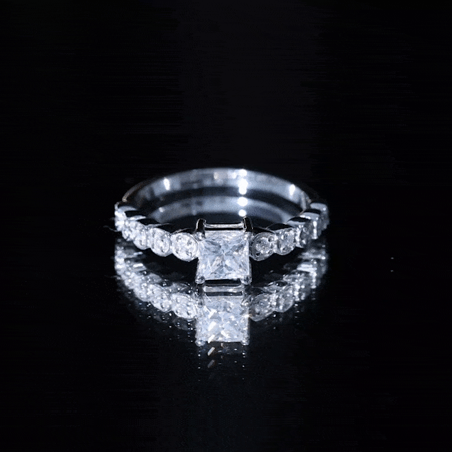 Lock her in your love with a Diamond Proposal Ring that shines as bright as your feelings for her. This elegant Solitaire Engagement Ring features a princess cut lab grown diamond of EF-VS quality in the center, held securely in a 4 prong setting. On either side of the focal stone, a series of round cut diamonds are set individually within a circular frame. This 1 ct Princess Cut Diamond Ring beautifully combines timeless beauty with contemporary artistry, making it an ideal choice for your big day. Your purchase also includes a certificate of guarantee for quality assurance and comes in a chic, protective box packaging, ideal for gifting or safe storage when not in use.