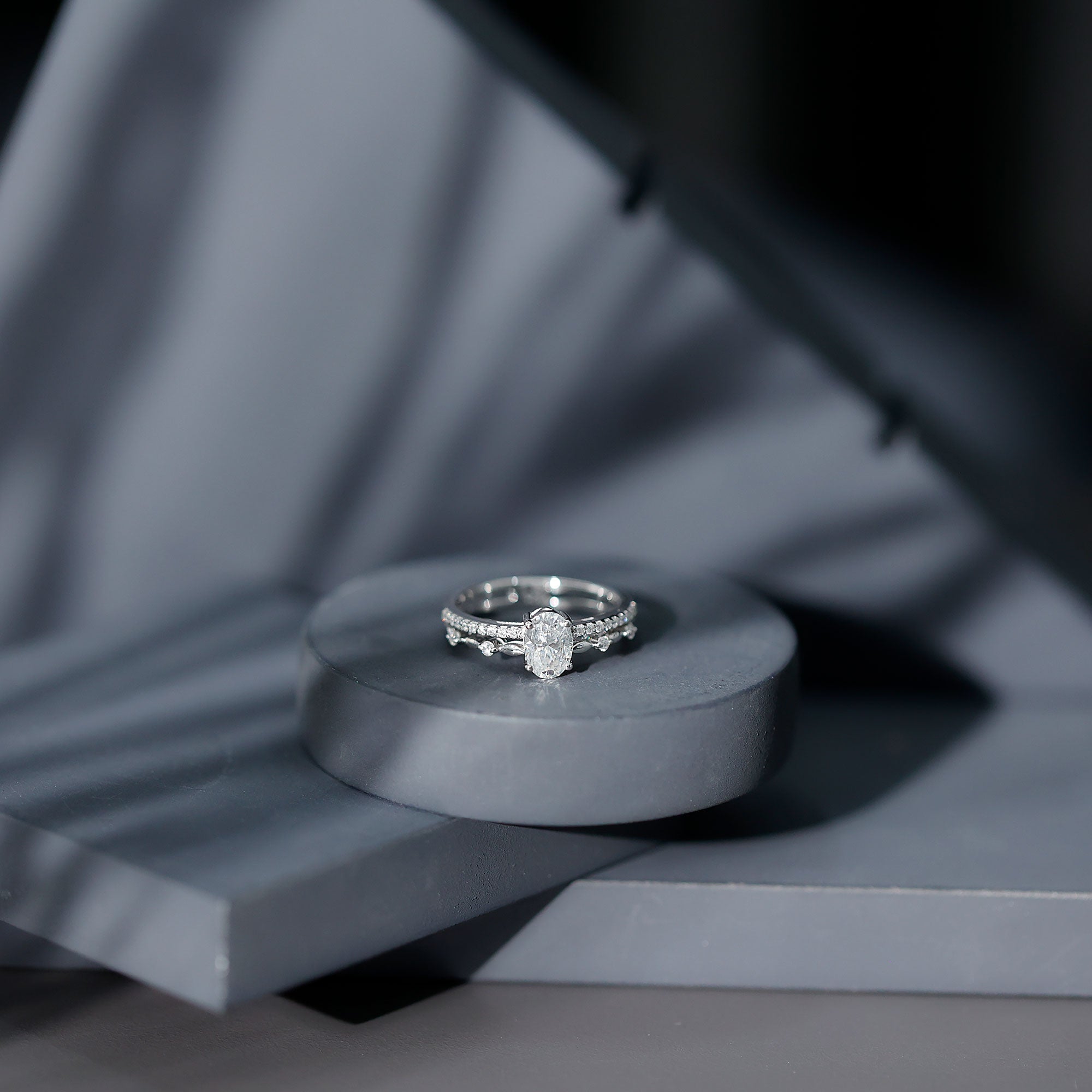 Lab Grown Diamond 5X7 MM Oval Shaped Double Band Engagement Ring