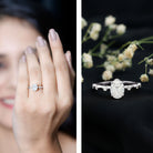 Unique and elegant this stunning Lab Grown Diamond Ring has a timeless appeal with an outstanding brilliance and fire. This Oval Engagement Ring has a unique charm with a classic beauty that looks unique. Embellished with 6X8 MM Oval Shaped Lab Grown Diamond in Prong Setting having an outstanding look that will never go out of style. Adorning the shank are the round brilliant Cut Diamond in the spaced accent that sparkles with an understated elegance. This unique and classic Lab Diamond Engagement Ring has a subtle yet striking brilliance offering a unique and sophisticated take on the classic Solitaire, perfect for promise or engagement.