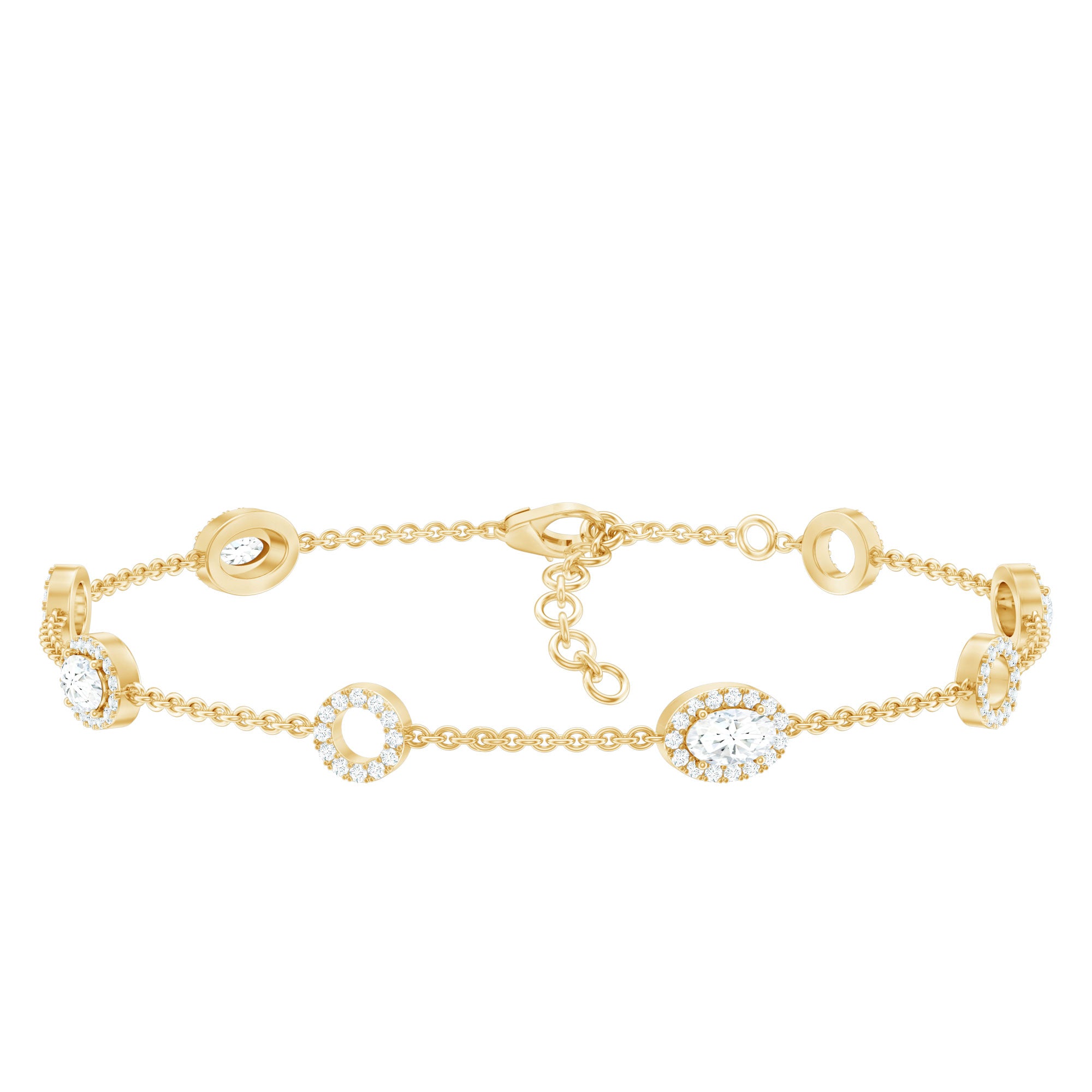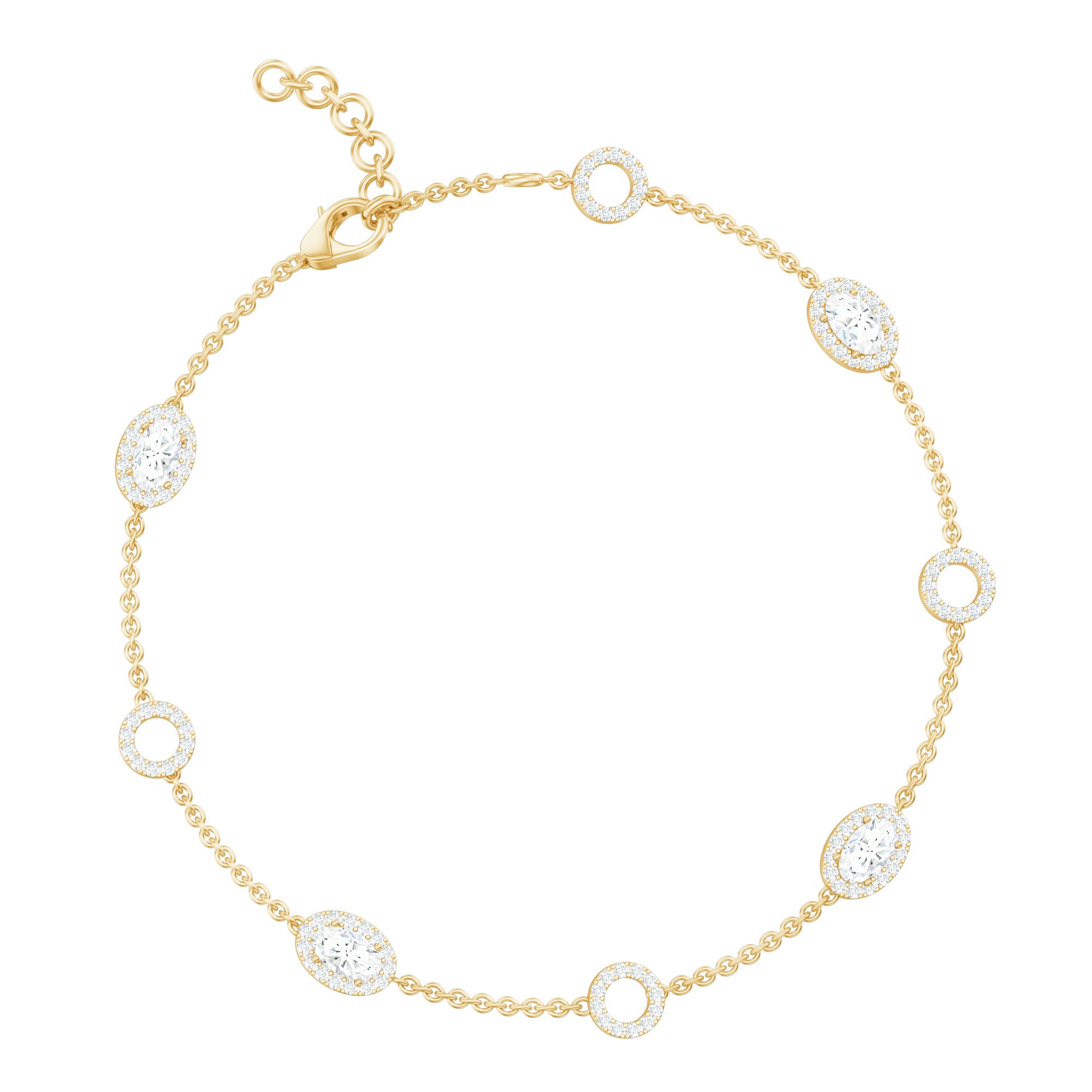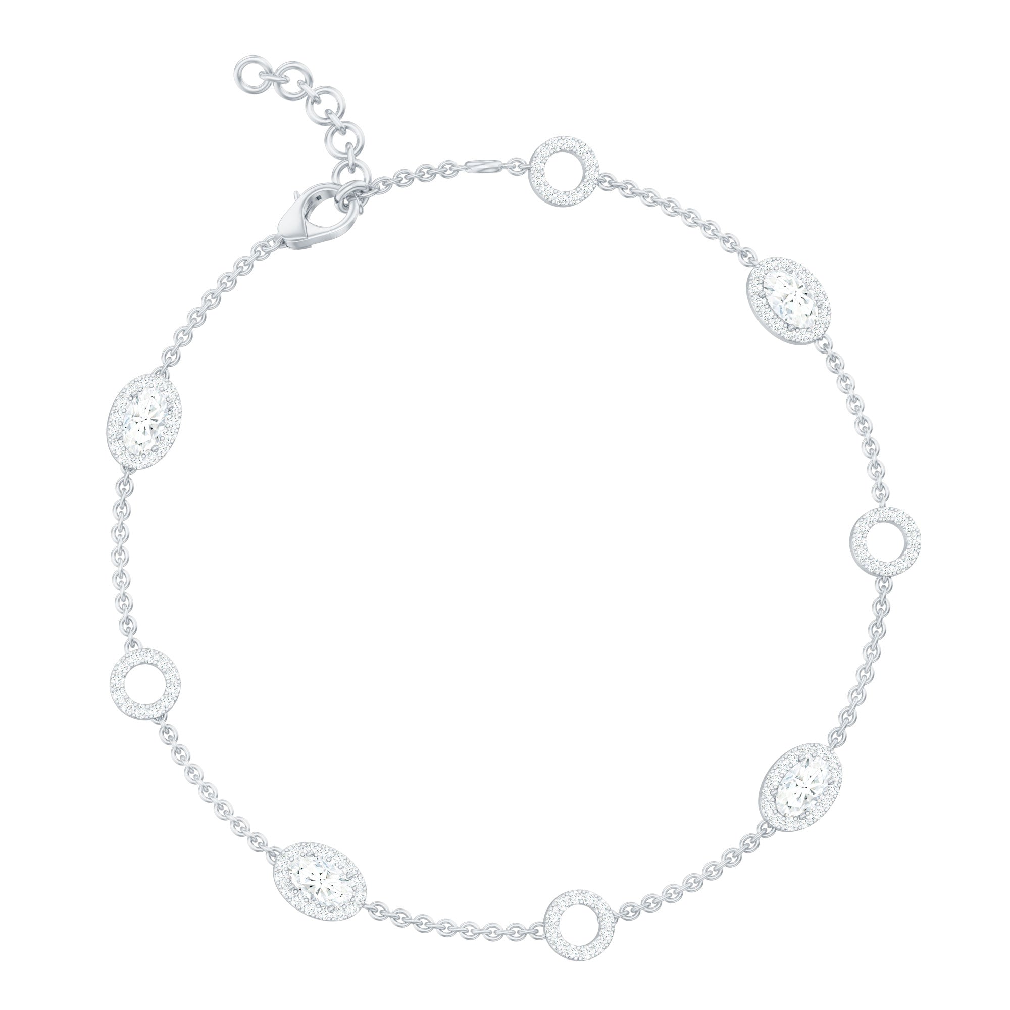 Strike out a wonderful statement on any special occasion by wearing this Halo Bracelet featuring 5x7 mm Oval Shape Diamond gemstones set in a prong setting and encircled by a Halo. This Lab Grown Dimaond Bracelet boasts Open Circle Design, adorned with shimmering gemstones, creating a sophisticated and timeless allure. The Lobster Clasp Closure ensures a secure fit. Embrace elegance with Rosec Jewels, where innovation meets beauty in every piece. This Wedding Bracelet makes an ideal gift for your lady love, perfect for celebrating the love and connection you share. Simple, yet stunning, this Ef-Vs quality Diamond Chain Bracelet will make her feel truly loved and appreciated.