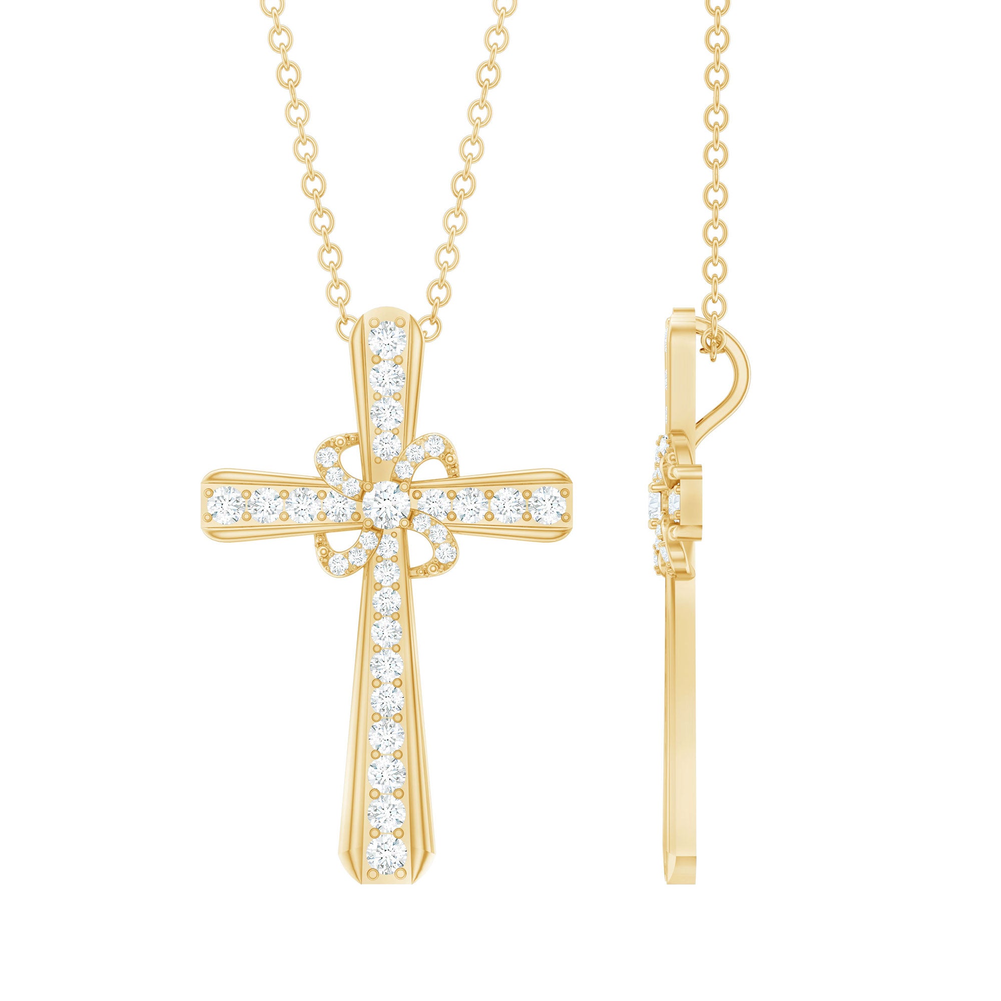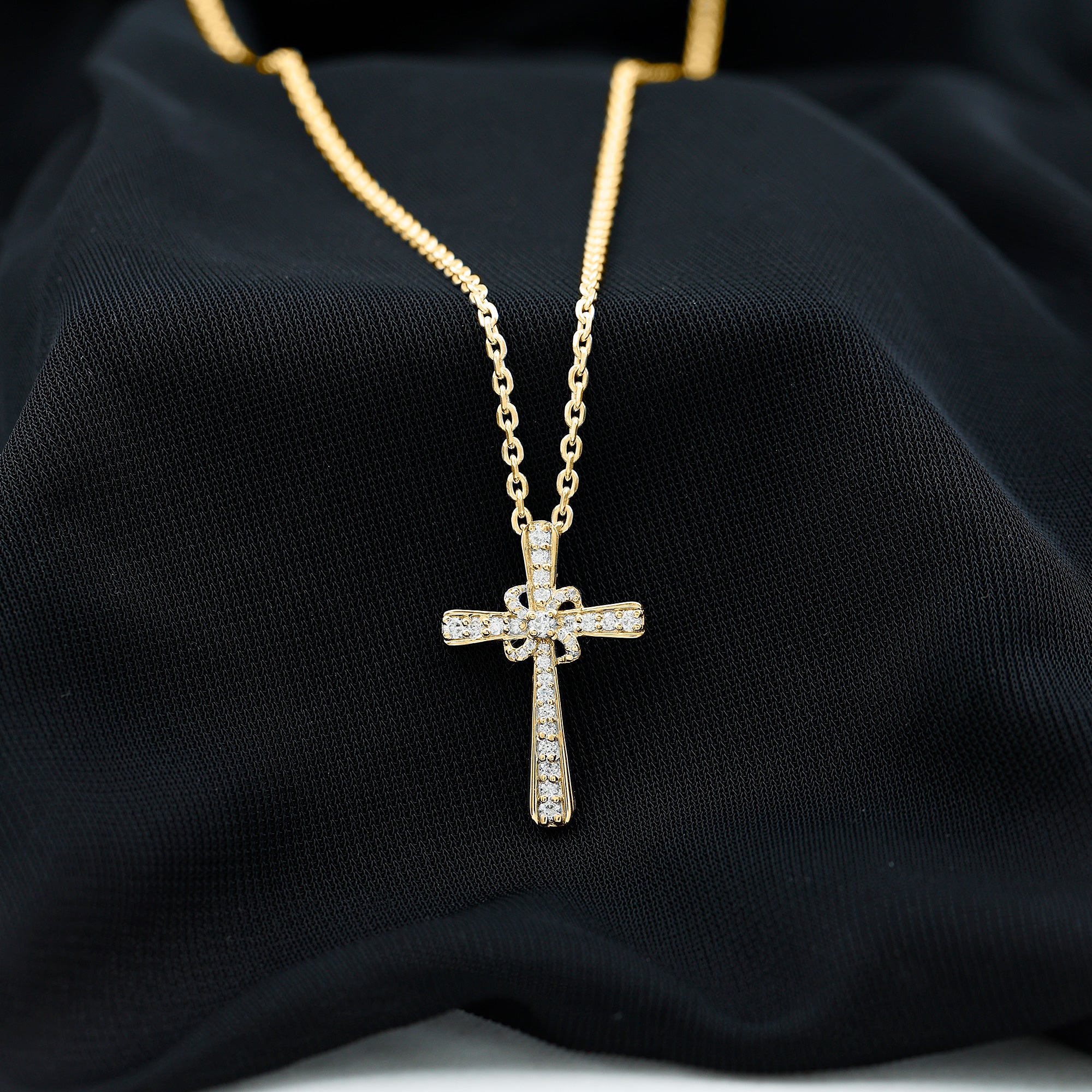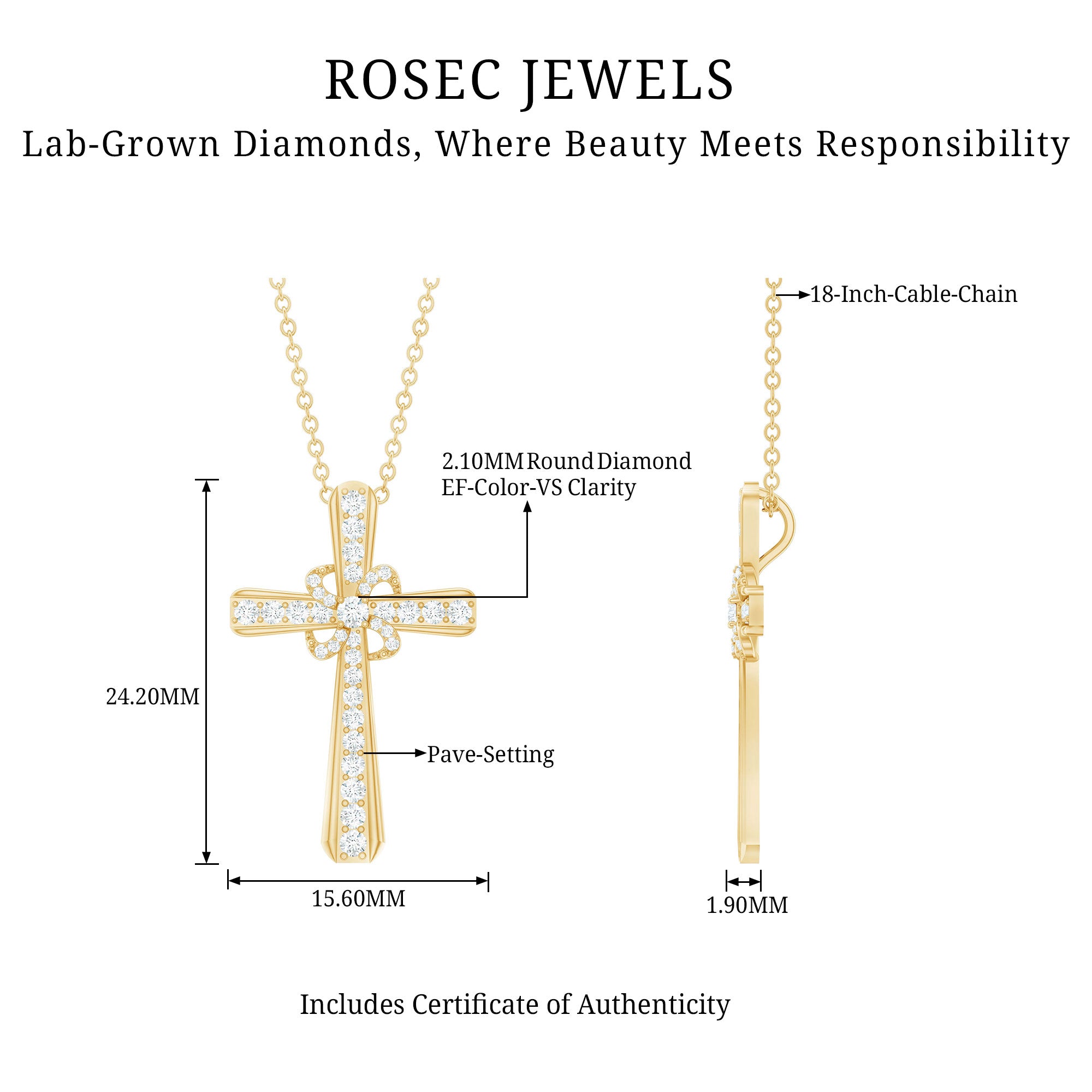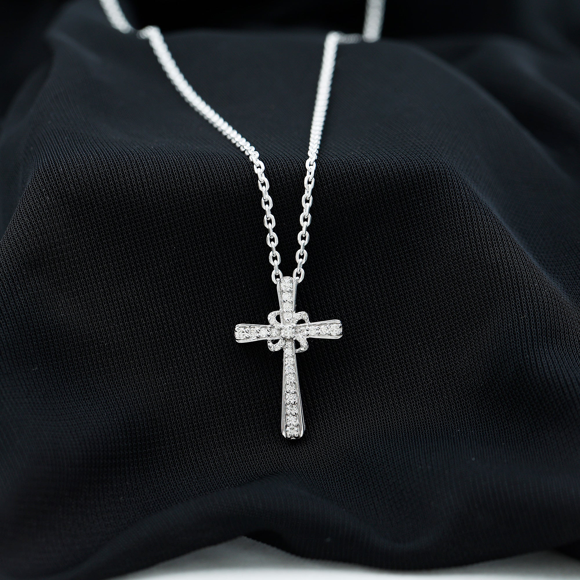Make a statement without saying a word - this breathtaking Diamond Cross Pendant does all the talking. This beautifully designed Christian Pendant features a hidden bail, giving it a smooth and seamless look. The cross is decorated with sparkling lab grown diamonds that gradually increase in size, making it even more eye-catching. At the center, a delicate flower inspired design encrusted with diamonds adds a touch of elegance. This Diamond Pendant Necklace is as versatile as it is stunning. Whether it is a christmas, birthday, anniversary, religious event, or just a special gift for a loved one, this Cross Necklace is a timeless symbol of faith and beauty.