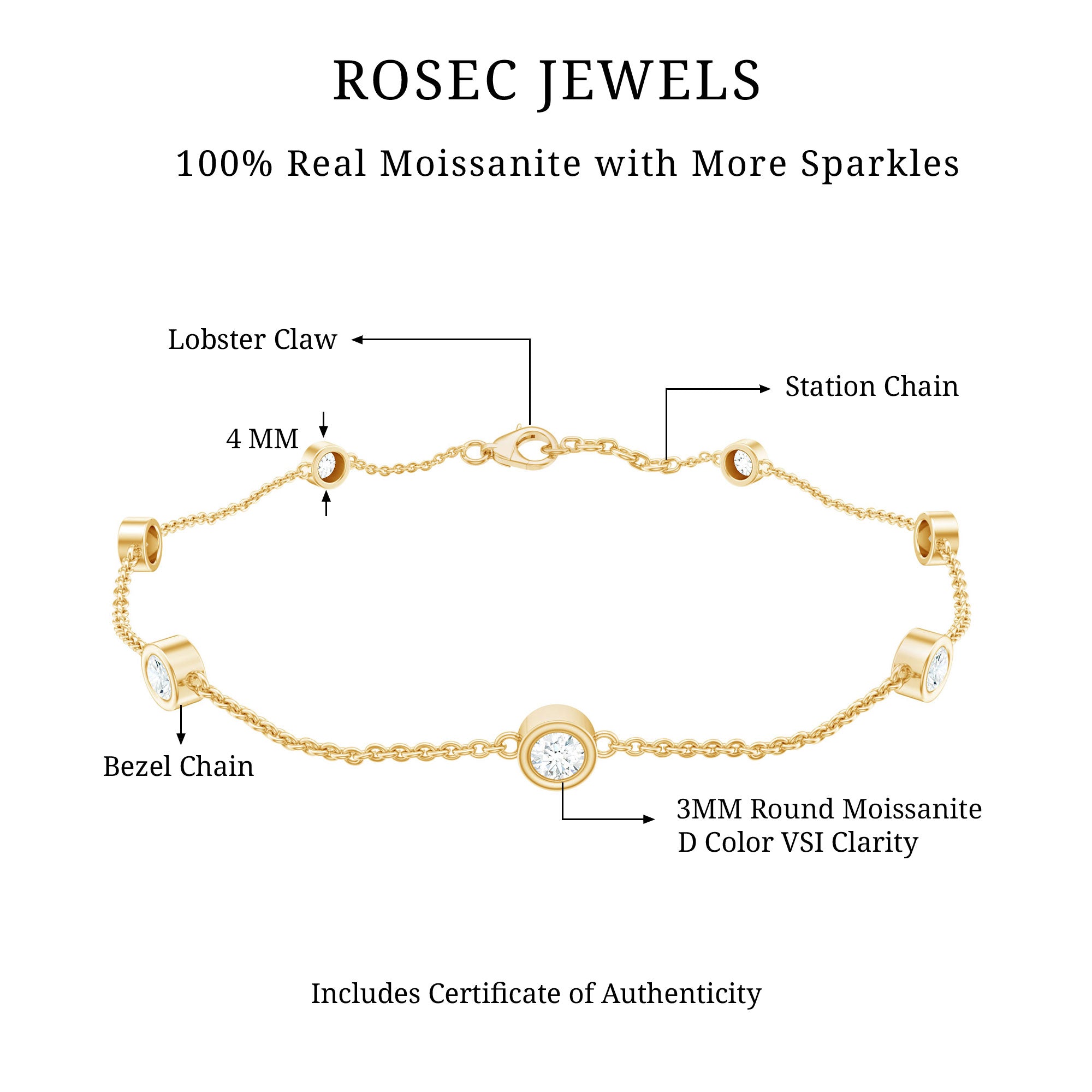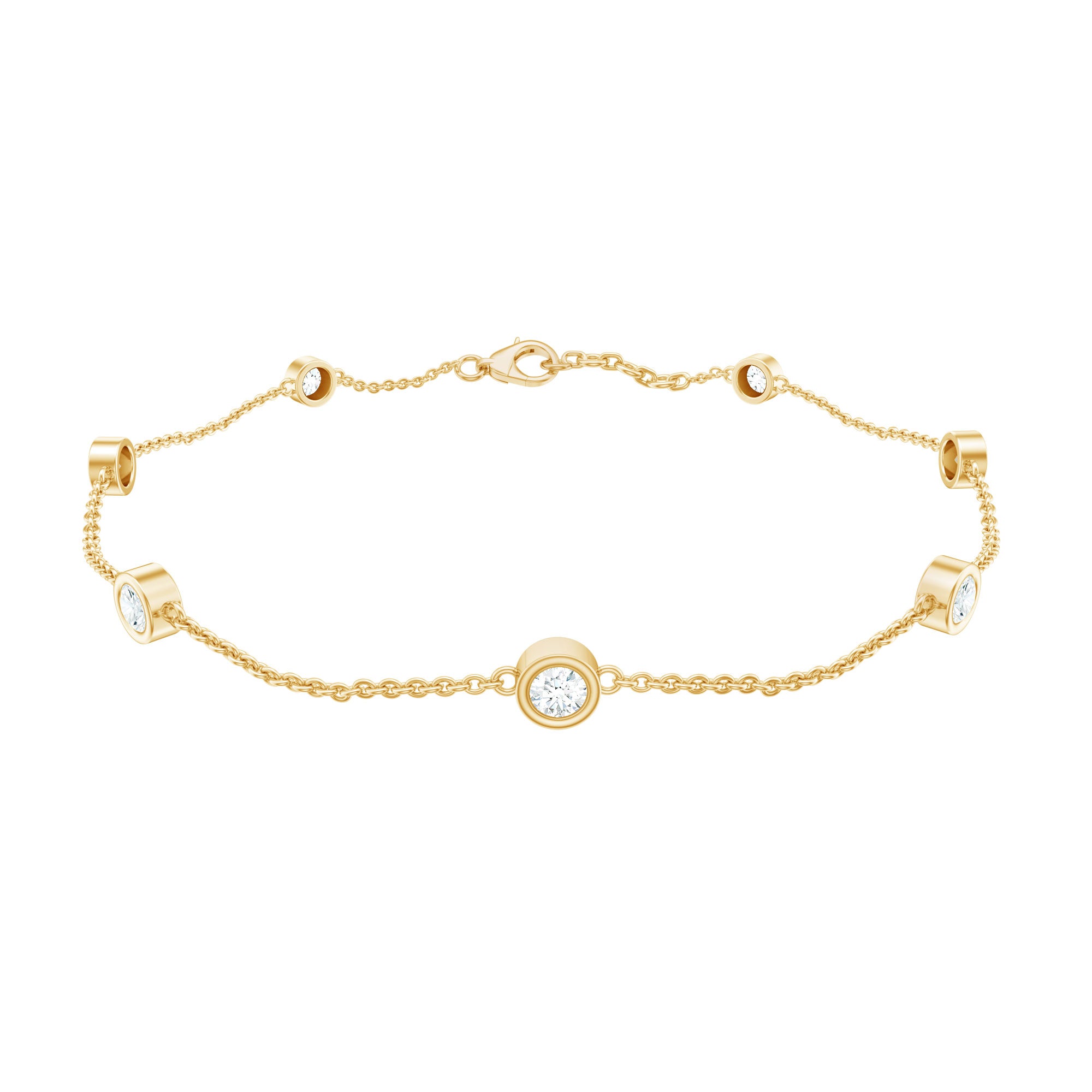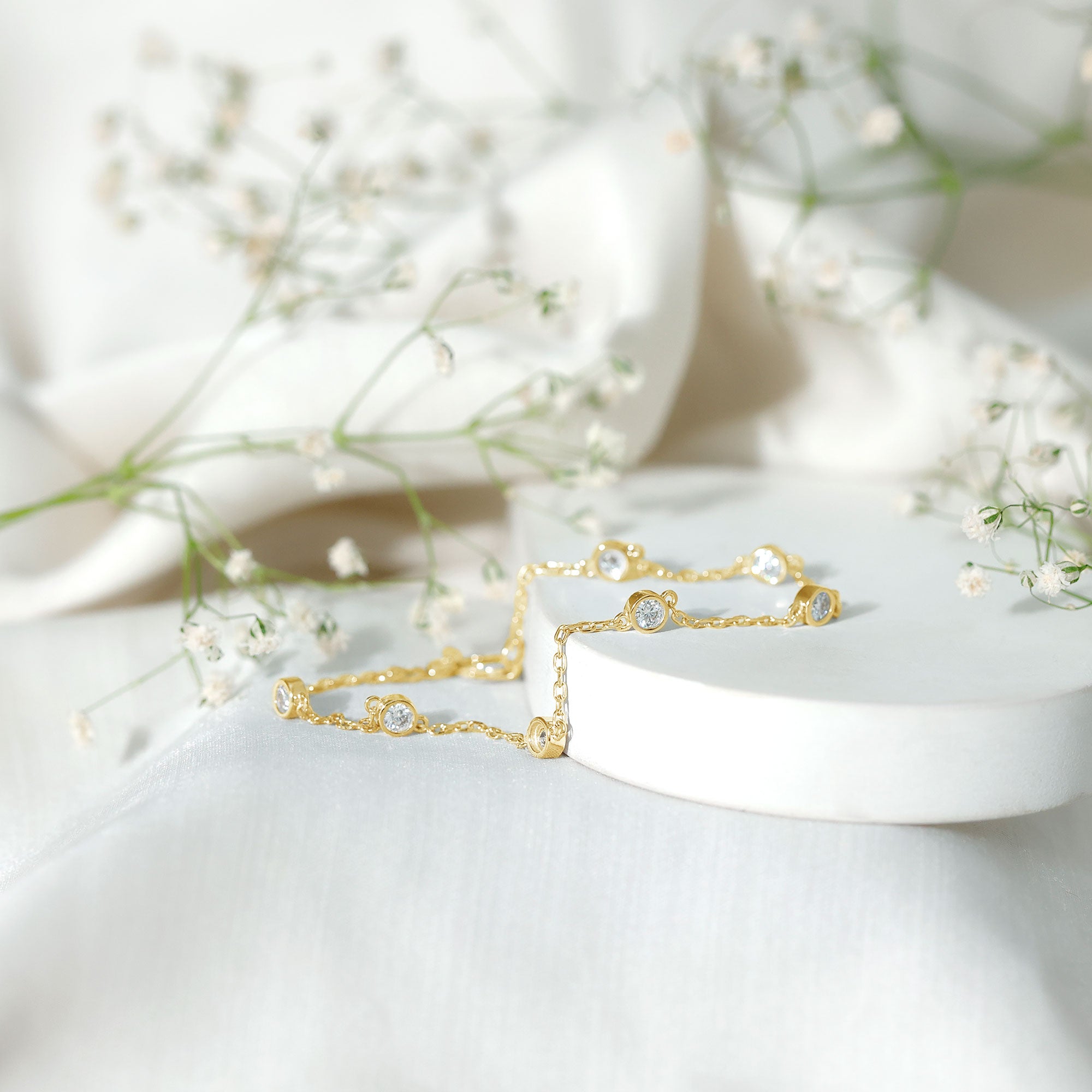 This Rosec Jewels Lab Grown Diamond Bracelet is the perfect accessory to help you shine like a star at any evening gathering. This stunning piece features delicate round cut diamonds (lab-grown) that are evenly spaced along the chain. The bezel setting secures the stones, allowing them to capture maximum light, which makes them sparkle beautifully and adds a contemporary flair. This Station Chain Bracelet is equipped with a secure lobster clasp, ensuring a safe and comfortable fit for all-day wear. It symbolizes love, strength, and inner sparkle, making it a thoughtful gift for yourself or someone special. It is lightweight and versatile, providing just the right touch of sparkle without being overwhelming. You can wear this Layering Bracelet on its own for a minimalist look or stack it with another bracelet for a bold statement, either way, it will give you the perfect style to dazzle in any moment.