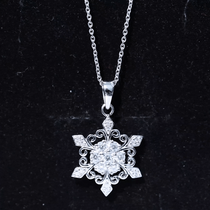 Captivating and full of charm, this Snowflake Pendant brings a fresh sparkle to your jewelry collection. Inspired by the delicate beauty of real snowflakes, this Fine Pendant is designed to shine with graceful detail. Each angle of the snowflake is carefully crafted and adorned with shimmering Round Shape Lab Grown Diamond stones, giving it an elegant glow that catches the light beautifully. Made with EF-VS Quality Lab Diamond stones, this necklace reflects the same brilliance and clarity as natural stones, but with a more thoughtful and eco-friendly touch. The snowflake design is eye-catching, making this Lab Grown Diamond Necklace perfect for everyday wear or dressing up for special occasions. Suspended on a fine chain, the snowflake sits gracefully at the neckline, adding a subtle sparkle that feels timeless and winter-kissed. Whether you are gifting it to someone special or adding it to your collection, this Lab Diamond Necklace is a lovely way to express your unique style, beautifully captured in a stunning snowflake. Presented in a beautiful jewelry box, this Lab Created Diamond Pendant is ready to become a favorite piece in any wardrobe. Elegant, meaningful, and easy to wear, this Diamond Snowflake Necklace (Lab Diamond) adds a little magic to every moment.
