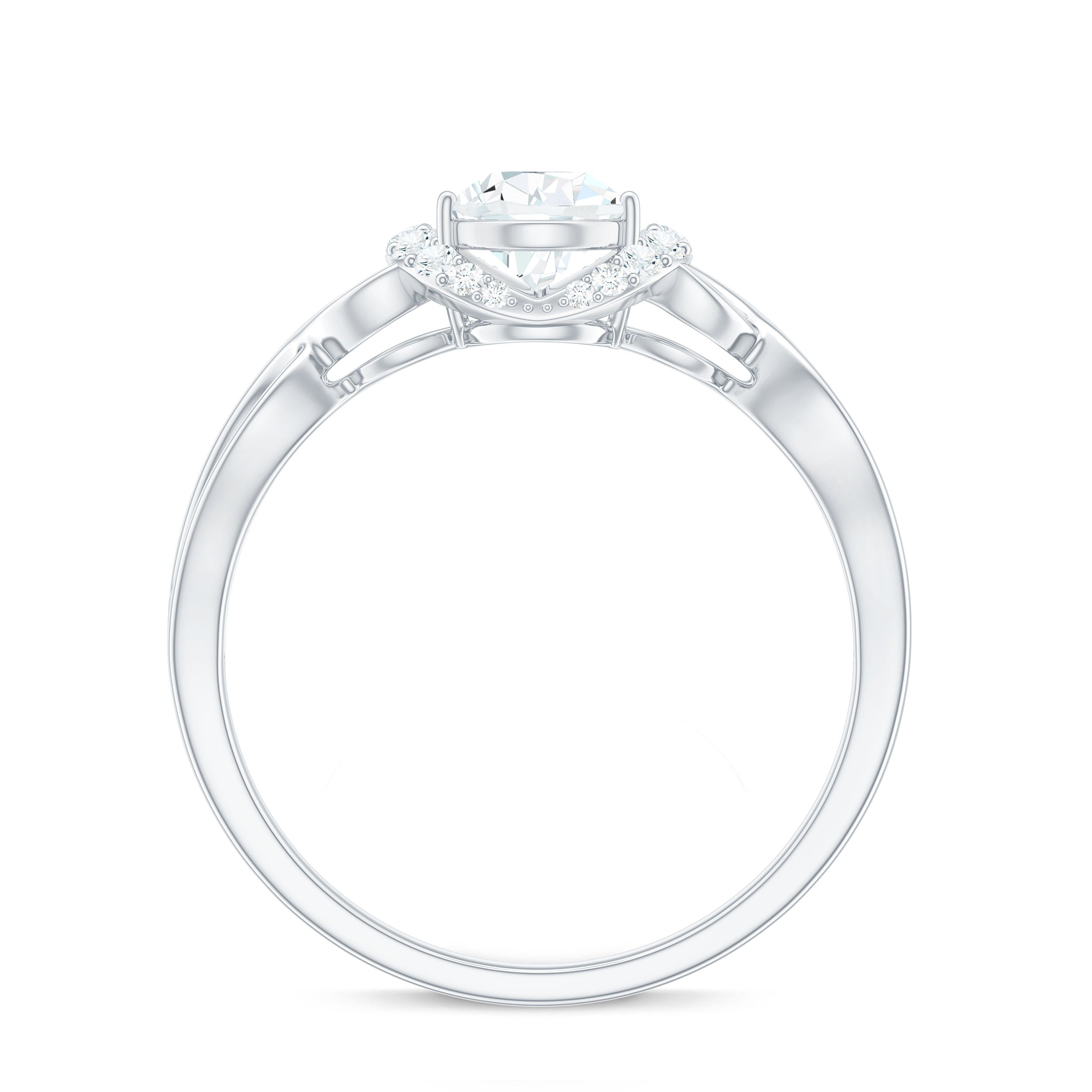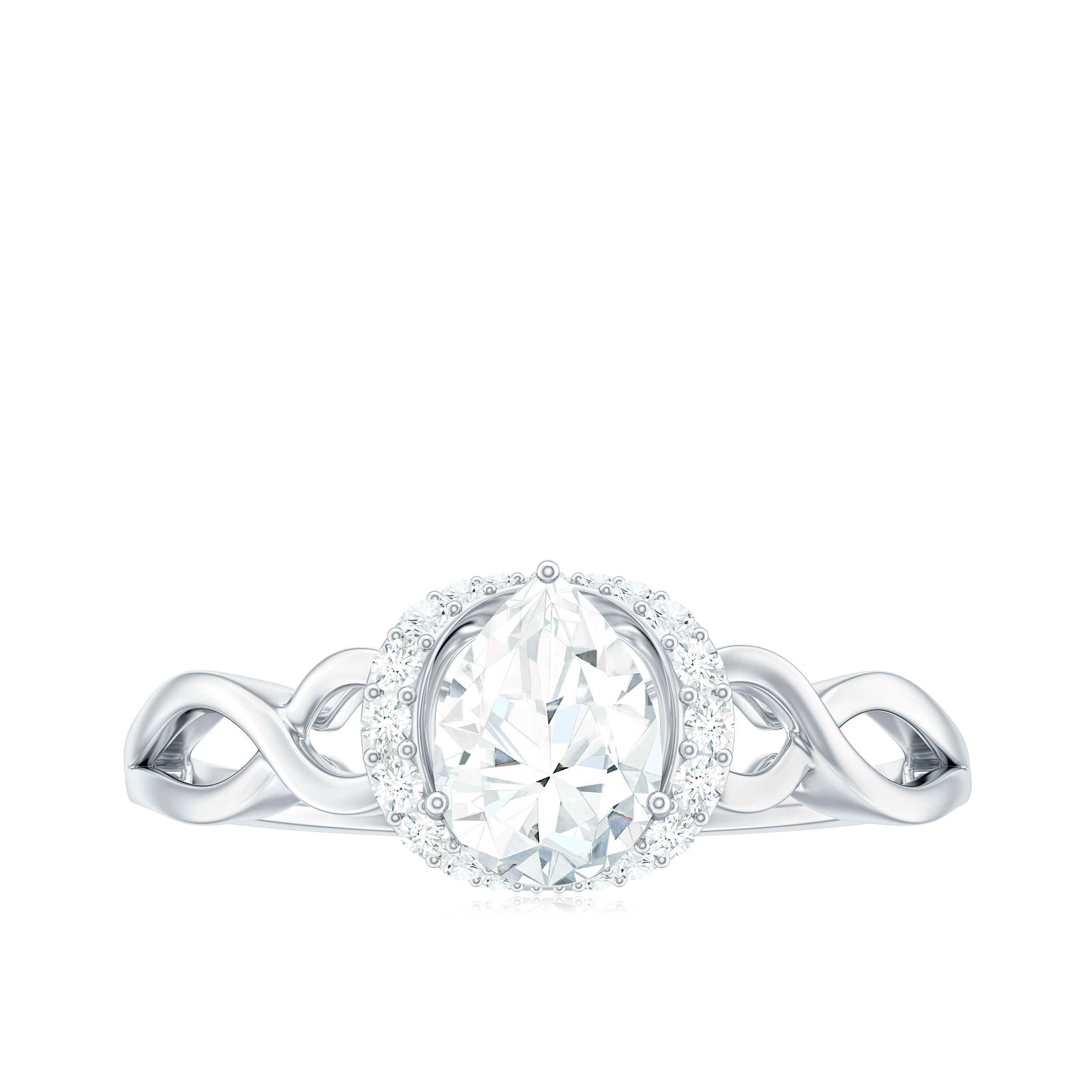 Express your love with a heartfelt gift: this exquisite Infinity Engagement Ring. This stunning Solitaire Ring features a Pear Cut Lab Created Diamond set in a three-prong setting as the centerpiece. The shank is adorned with Round Shape Created Diamond Stones arranged in a Collar Design, adding to its elegance and charm.