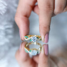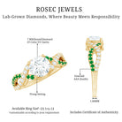 Introducing this stunning Diamond Engagement Ring, a beautiful combination of classic elegance and modern appeal. The band of this Crossover Ring features two strands one is adorned with round cut diamonds while the other one is graced with green emeralds that intertwine beautifully to create a criss cross effect. This playful design draws the eye to a central 7 mm round cut diamond (EF-VS quality ), cradled in a delicate four-prong setting. Charming and stylish, this Round Engagement Ring symbolizes enduring love and showcases refined taste. Its unique twist in design adds a touch of sophistication to this timeless piece. This Diamond and Emerald Ring is a thoughtful and affordable present for your loved one. Made with ethically sourced, lab grown diamonds, it offers the luxury of fine jewelry while being environmentally friendly.