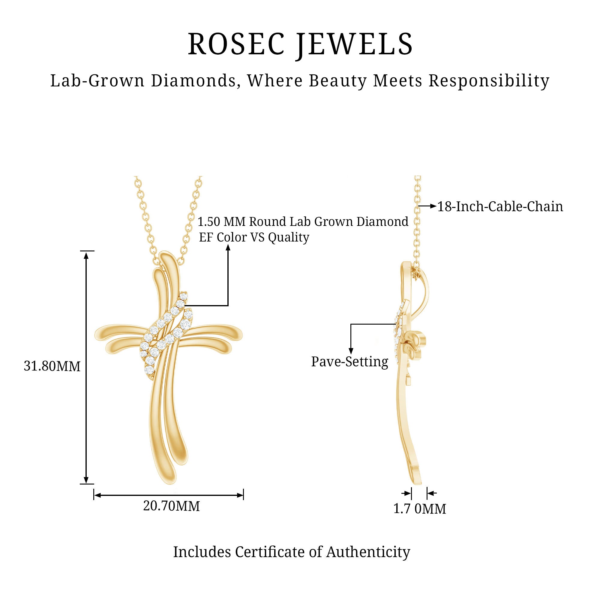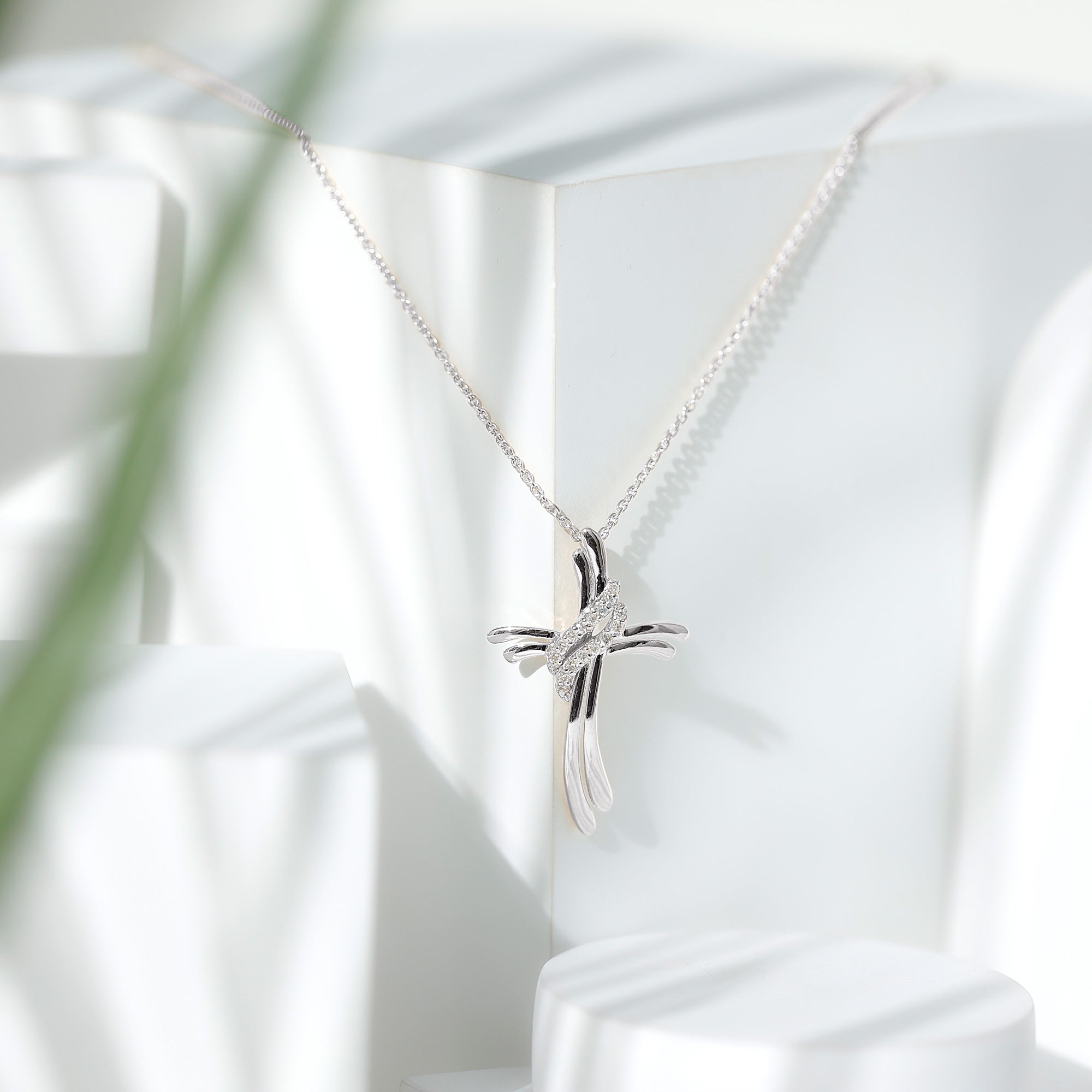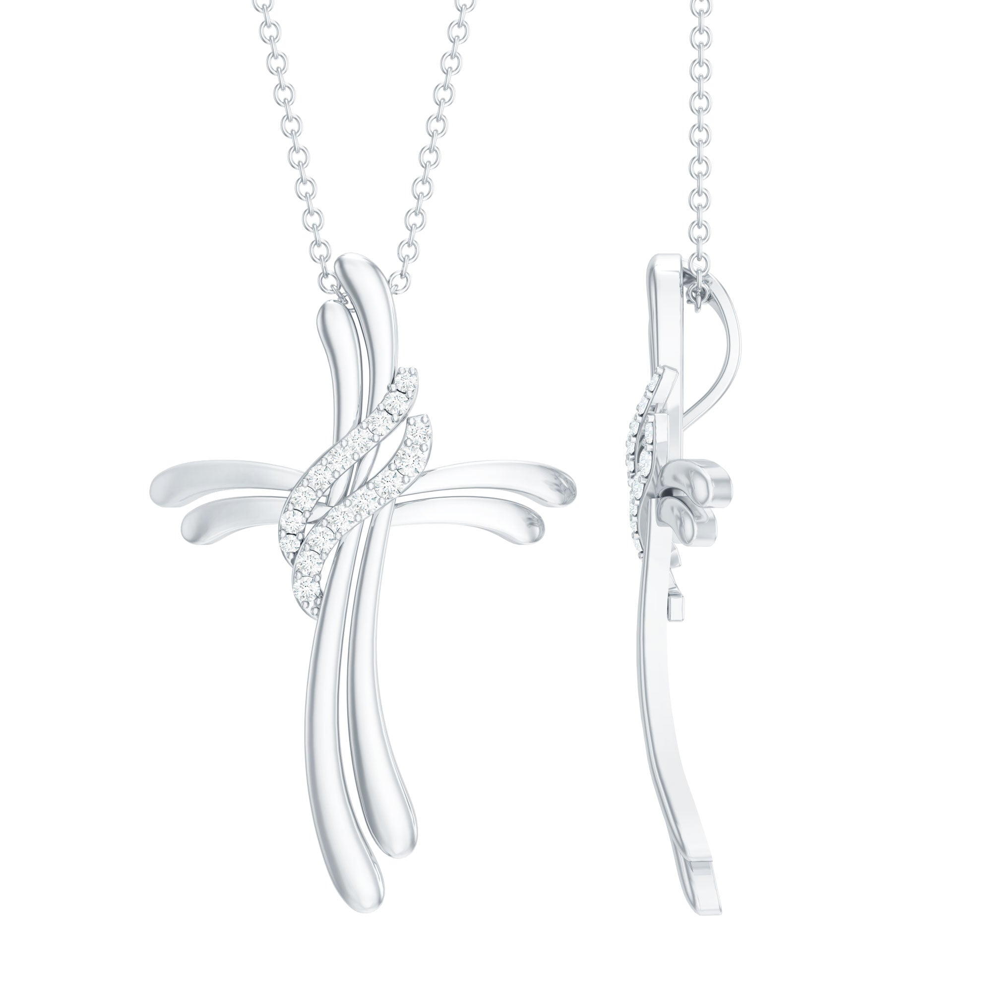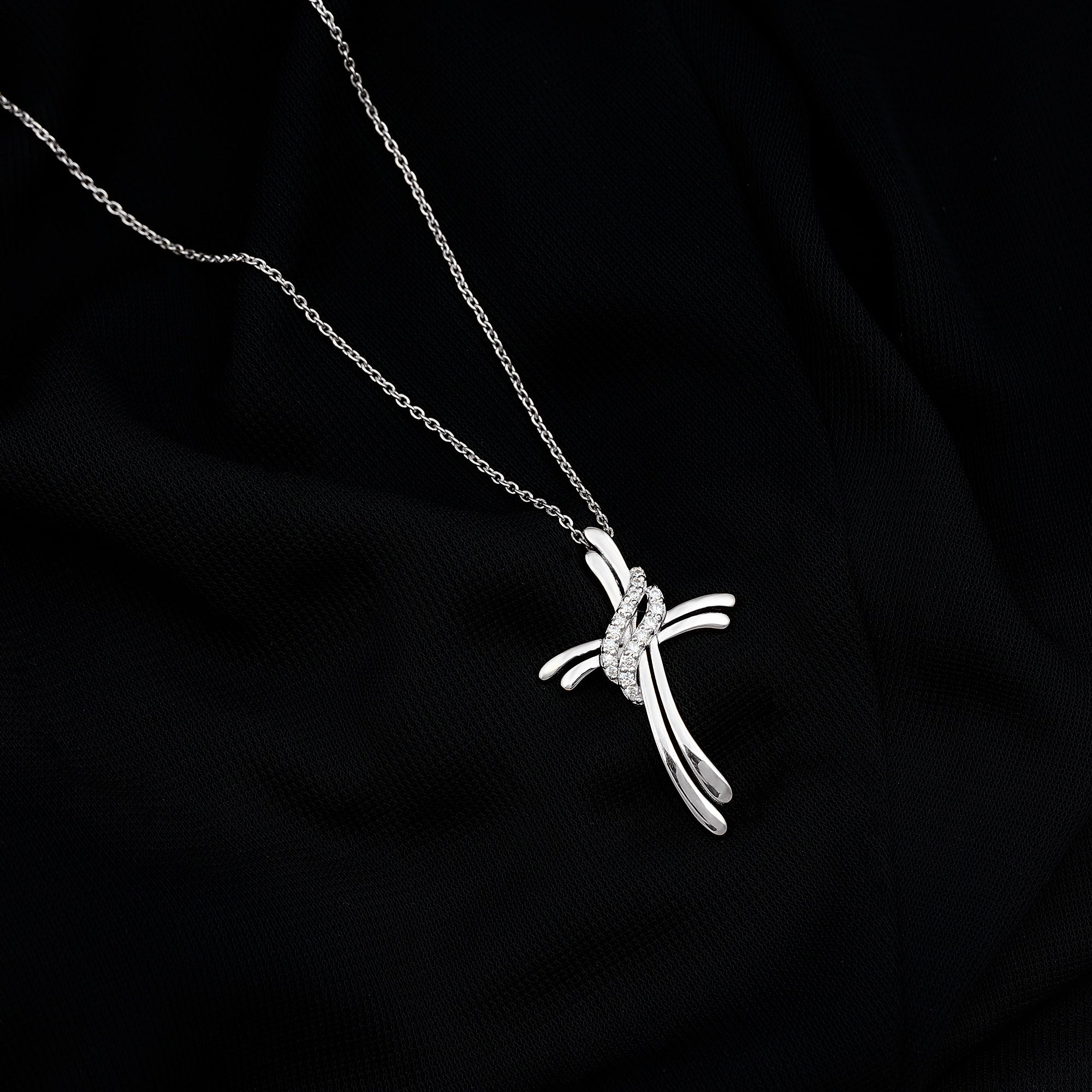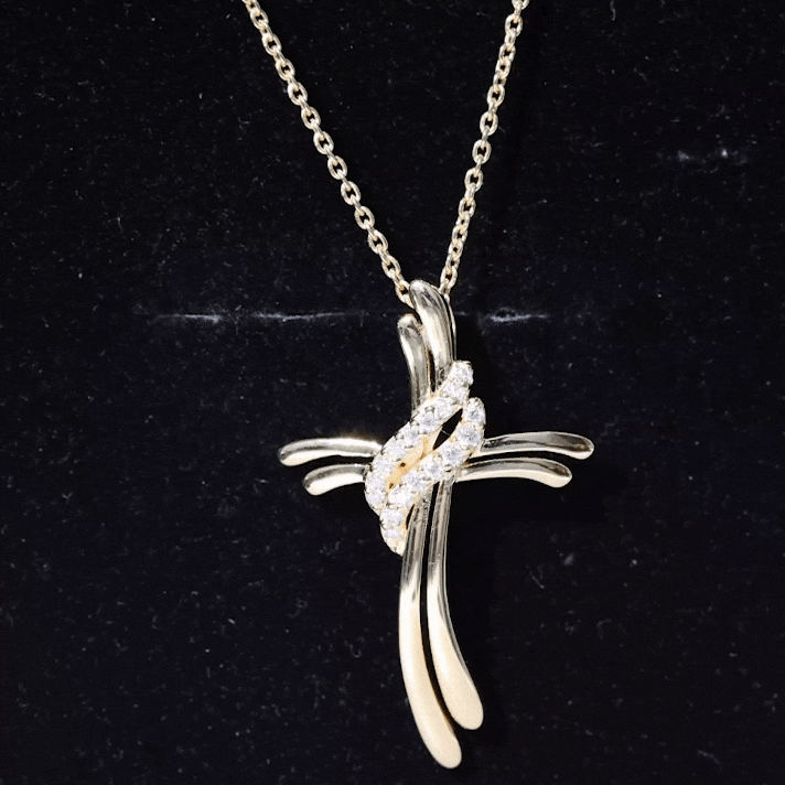 If you are looking for a piece of jewelry that is both meaningful and beautiful then your search ends here, our Diamond Cross Necklace is a great mix of faith and modern style. This Diamond Pendant Necklace features a cross symbol in a soft ribbon-like structure, giving it a flowing appearance. At the center, two sparkling lab grown diamond studded twists gracefully wrap around the symbol, adding a brilliant contrast to the smooth metal. The Cross Pendant is an ideal gift for Christmas, anniversaries, Valentines Day, and birthdays. Whether you are heading to the office, dressing up for a special occasion, or simply elevating your everyday style, this Christ Necklace will give you the perfect look.