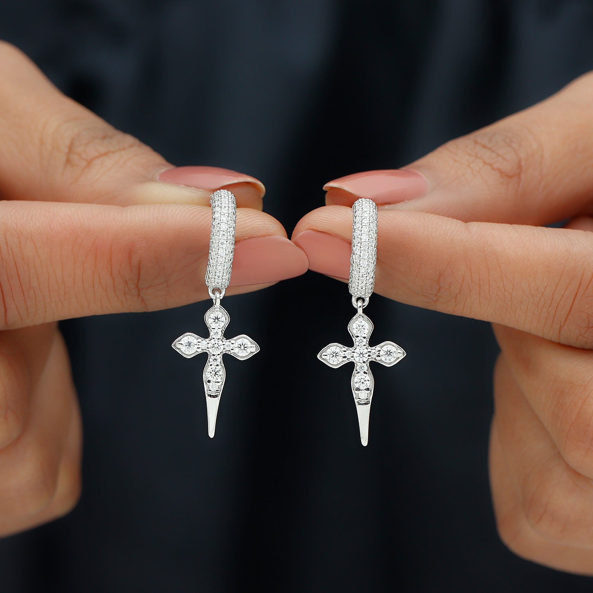 These Vintage Inspired Diamond Cross Earrings are a stunning blend of old world charm and modern craftsmanship. Featuring an elongated cross adorned with dazzling round lab grown diamonds dangling from a gemstone-studded curved bar at the top. Designed with a secure screw back closure, these Minimalist Earrings offer both style and comfort, ensuring a perfect fit for all day. These Diamond Drop Earrings are incredibly versatile and ideal for both casual and formal occasions. You can wear them to church, religious occasions, or weddings as a beautiful expression of faith. For making a statement pair them with a matching necklace and bracelet - also available on our website.